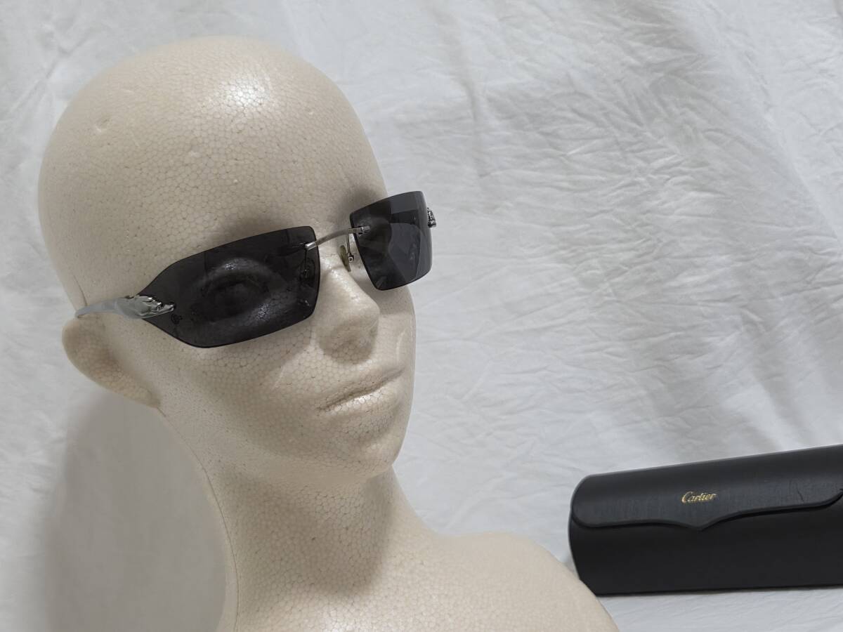 正規良レア Cartierカルティエ パンテール パンサーメタルフレーム サングラス 黒 ロゴ シャイニークロームフィニッシュアイウェア Gackt着