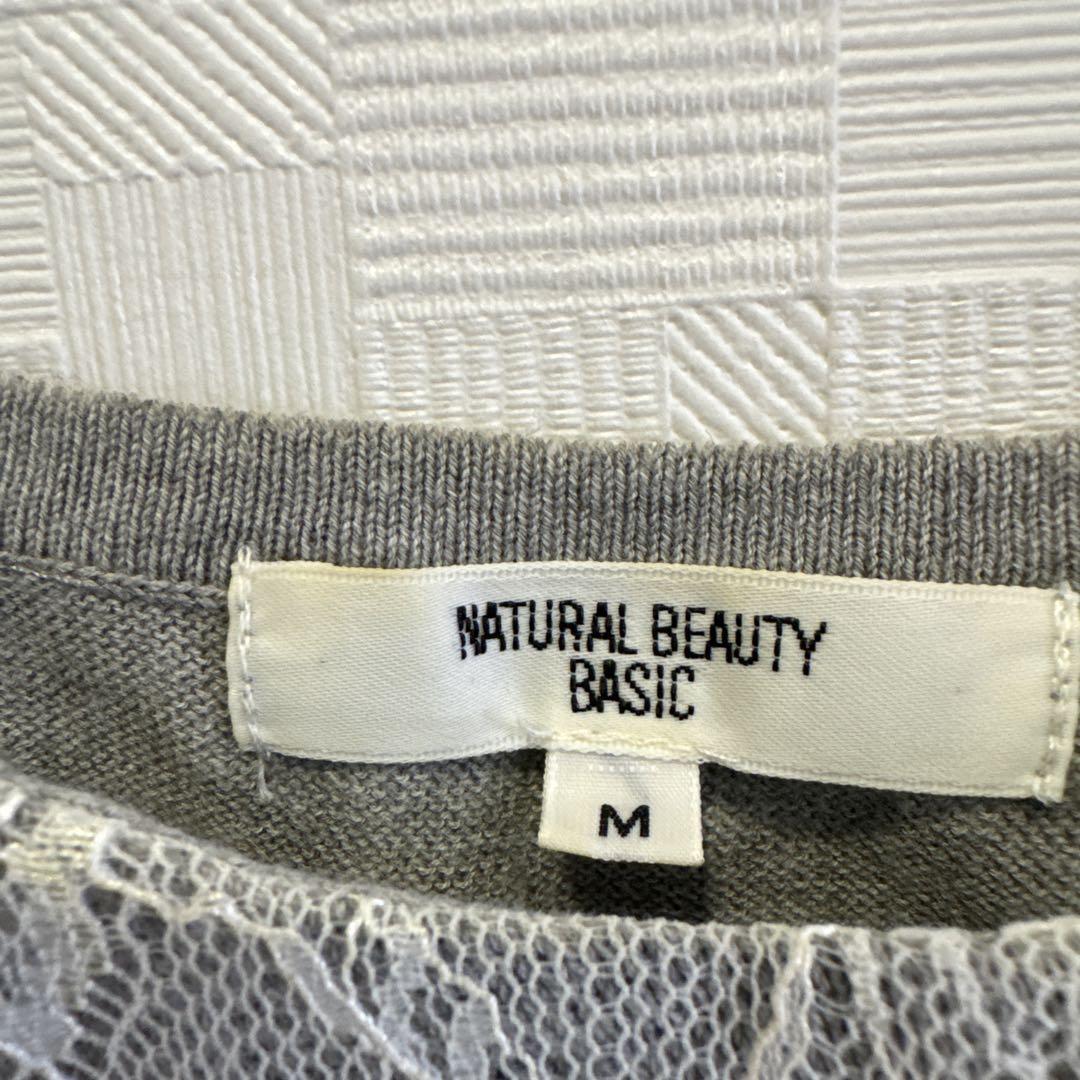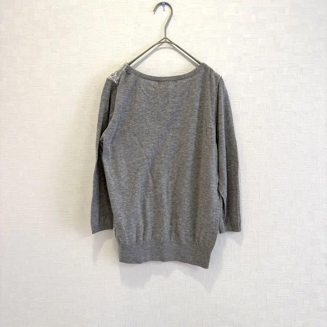レースとスウェットのコンビネーションで、カジュアルながらもエレガントな印象を与える五分袖トップス。