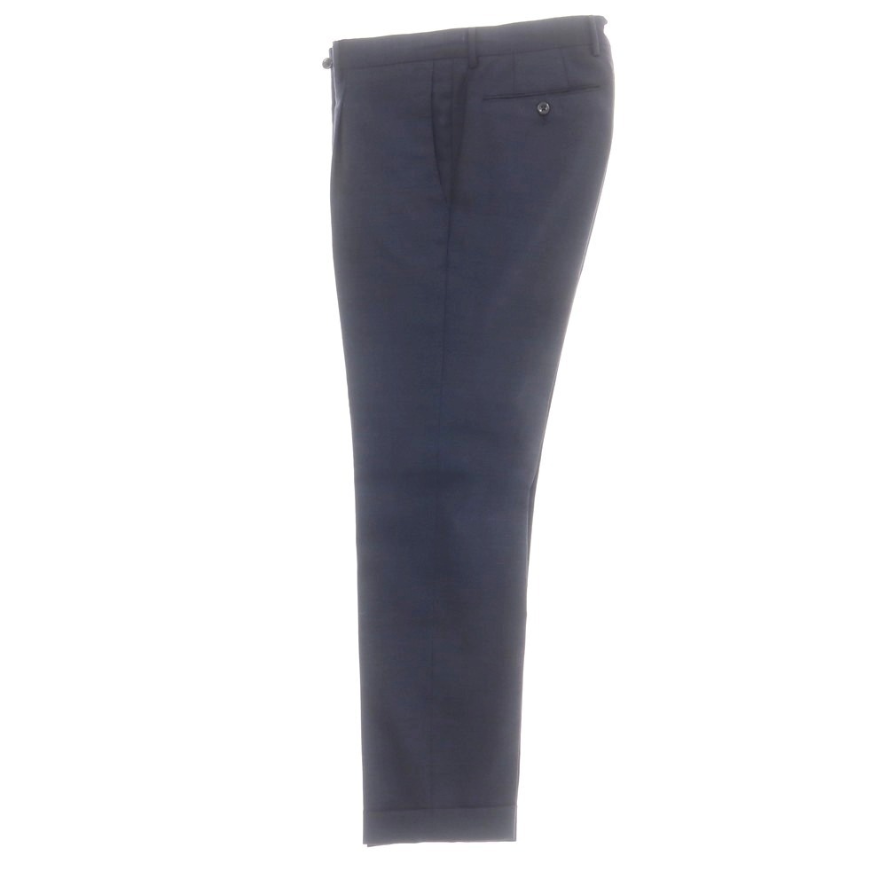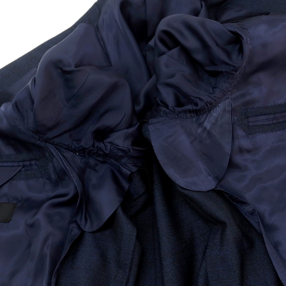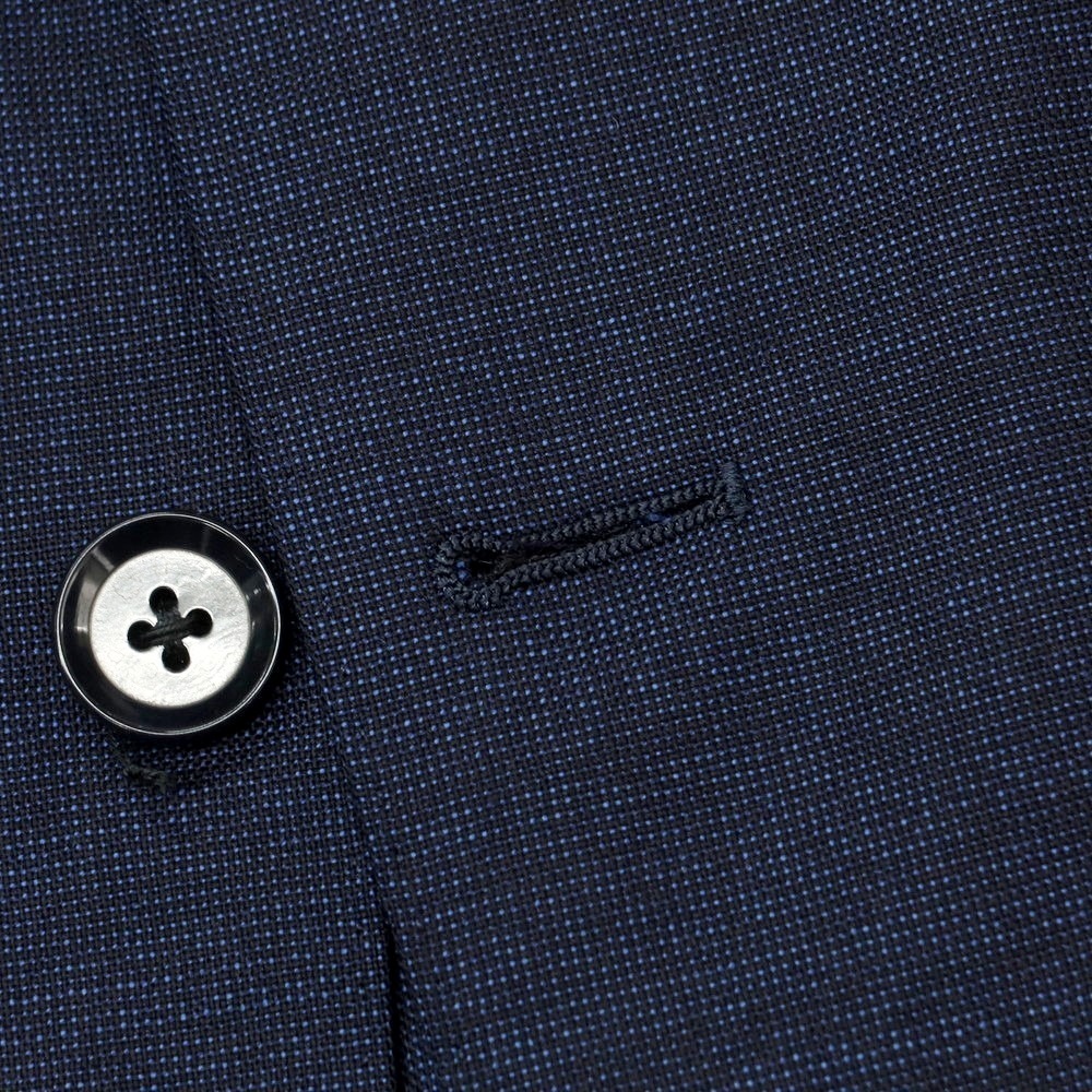 ドライなタッチの春夏寄り寄りのウール生地を用いたスーツ。ダークネイビーとブルーの糸で織った立体感のある色合いも魅力です。