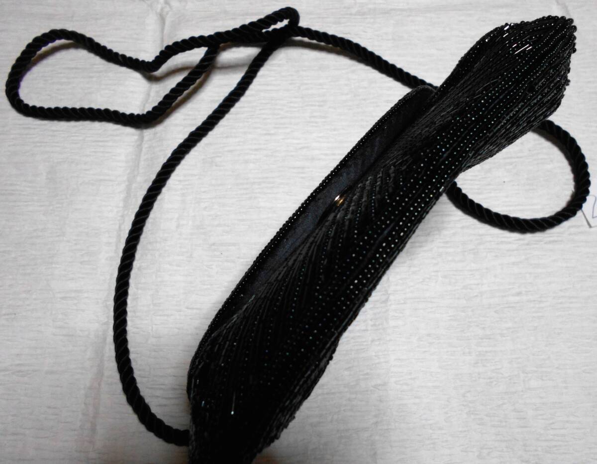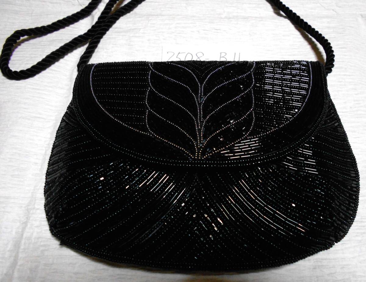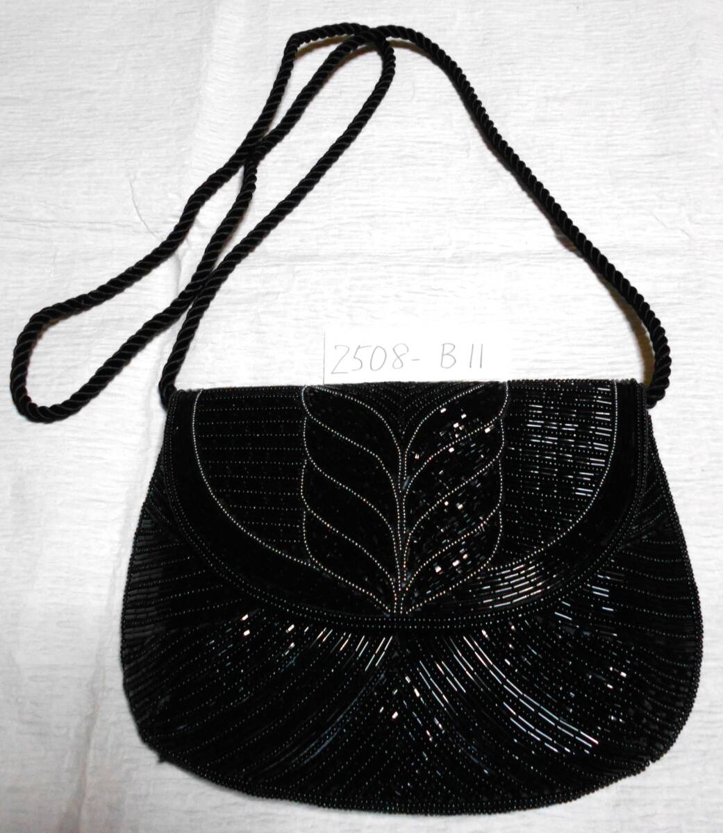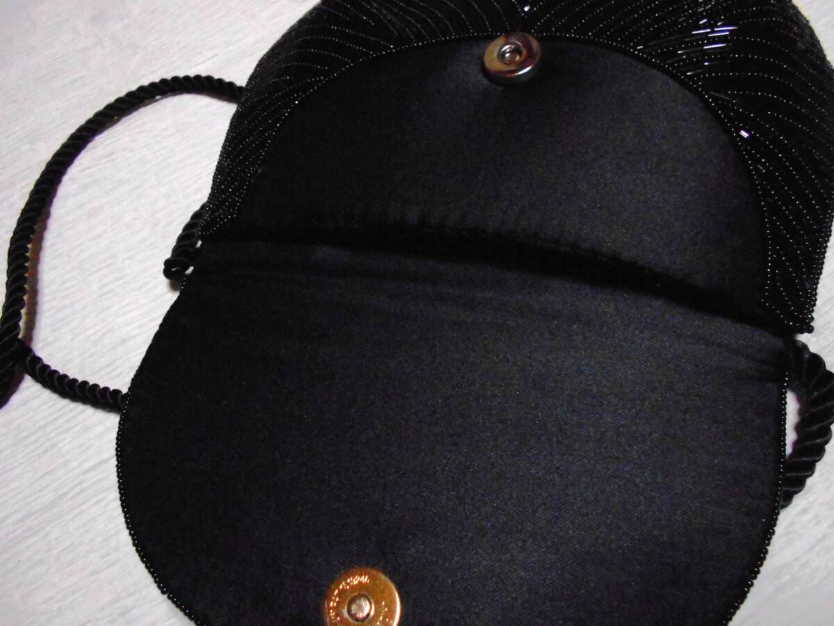 黒色のビーズに玉虫ビーズで葉柄のポシェットです。