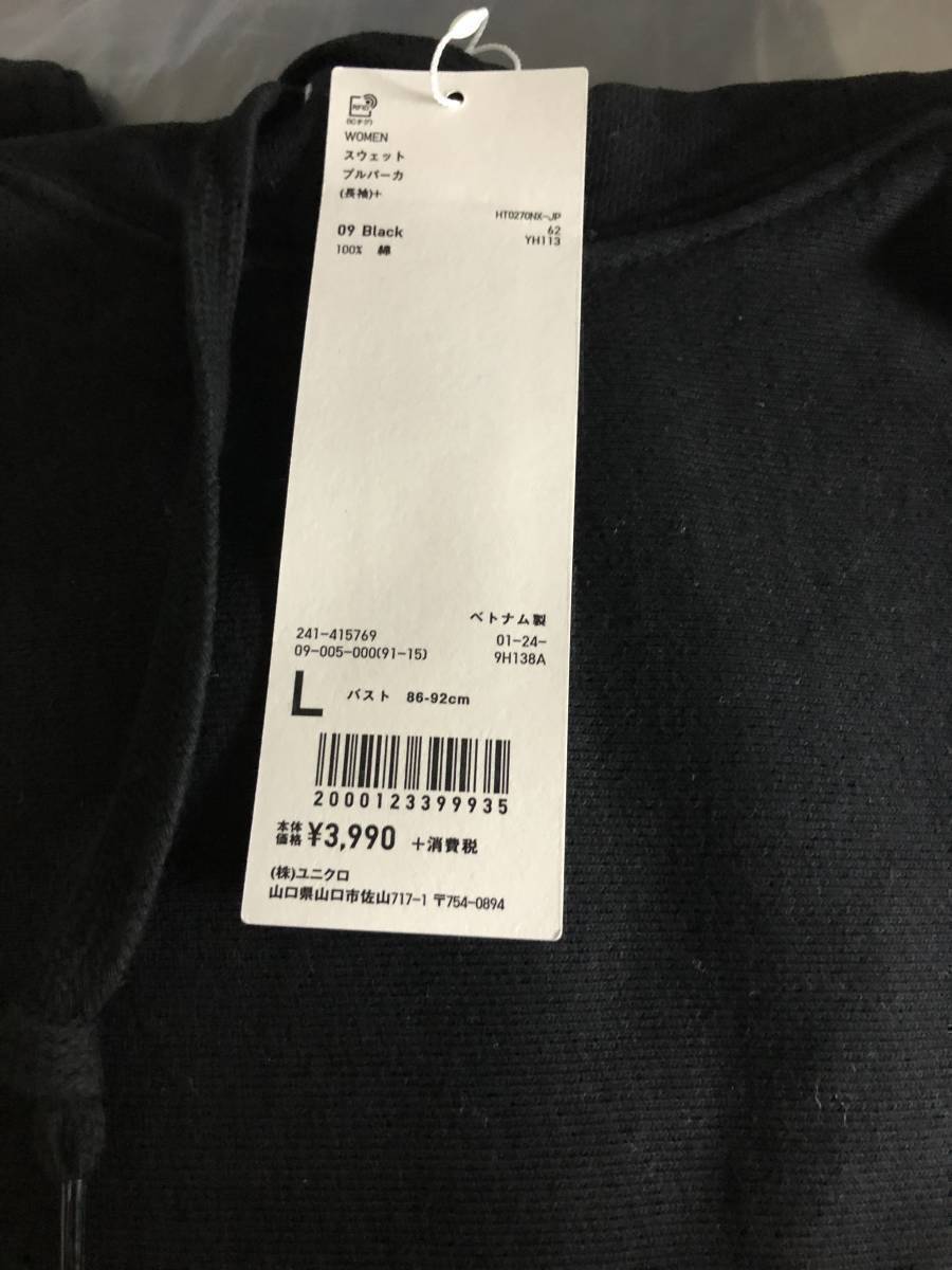 UNIQLO ユニクロ UNIQLO U ユニクロユー スウェットプルパーカー 長袖 パーカー 新品 Lサイズ ブラック