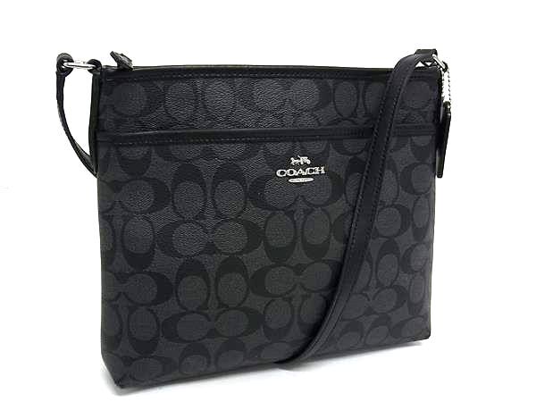 1円 COACH コーチ F29210 シグネチャー PVC×レザー クロスボディ ショルダーバッグ 斜め掛け 肩掛けかばん ダークグレー系 BN5086