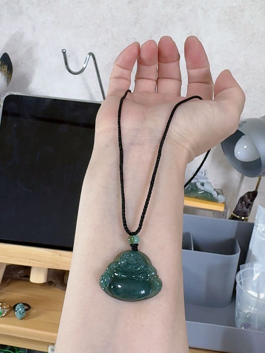 R2-02000天然本翡翠《本物保証》 仏様 ひすいペンダント 一点物 魔除け 昇進 成功 風水 金運 財運 幸運 幸福 縁起物 パワーストーン