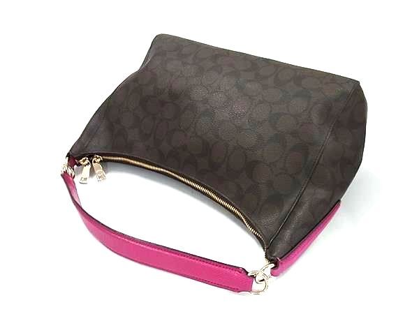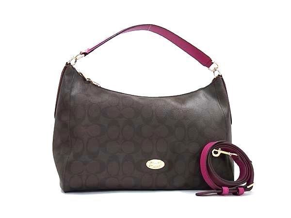 1円 ■極美品■ COACH コーチ F34899 シグネチャー PVC×レザー 2WAY ショルダーバッグ ハンドバッグ ブラウン系×パープル系 FS4112