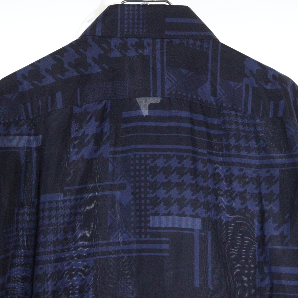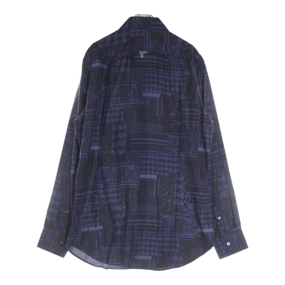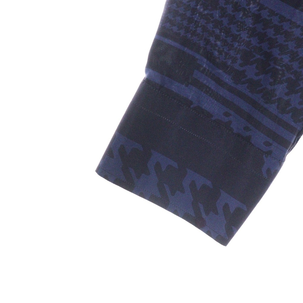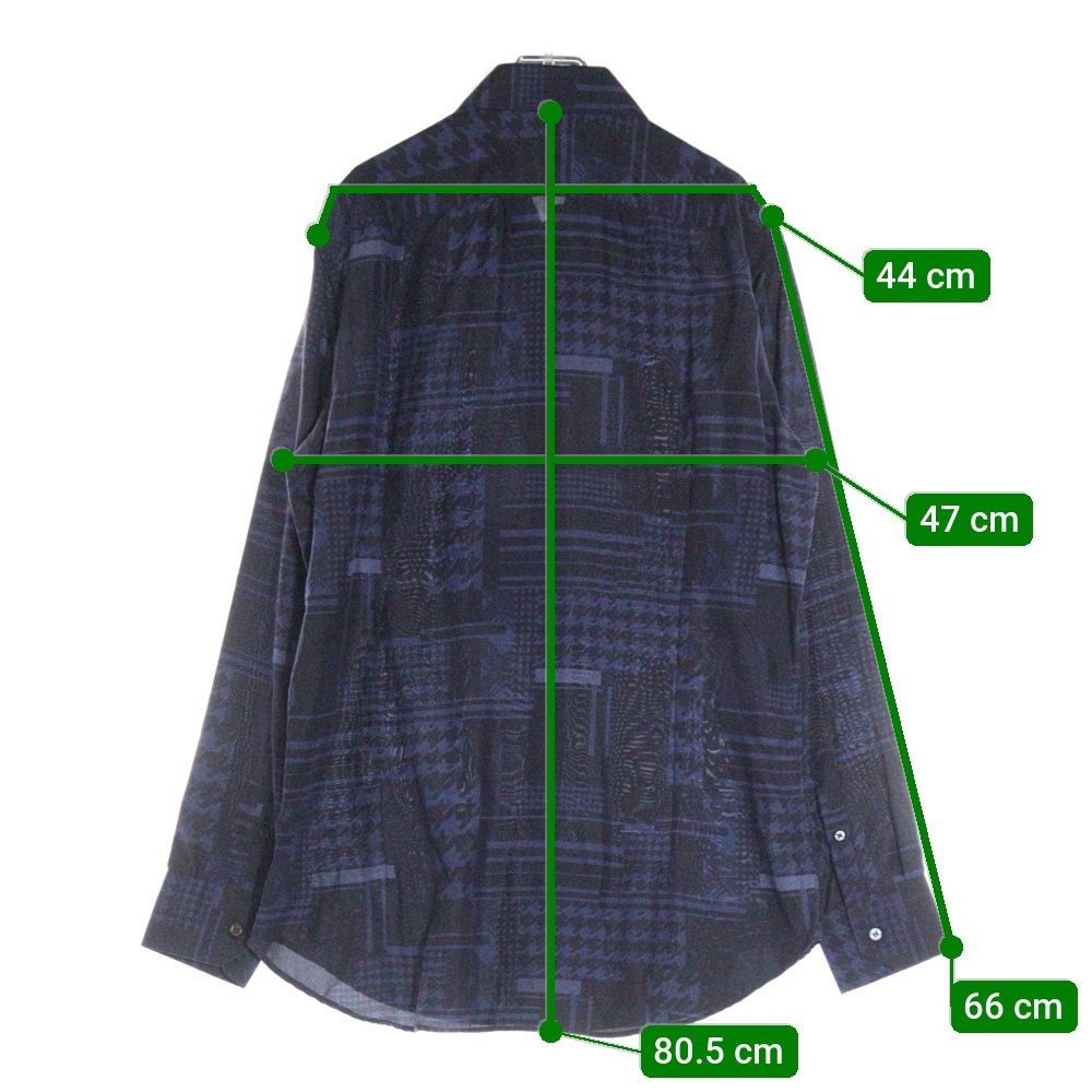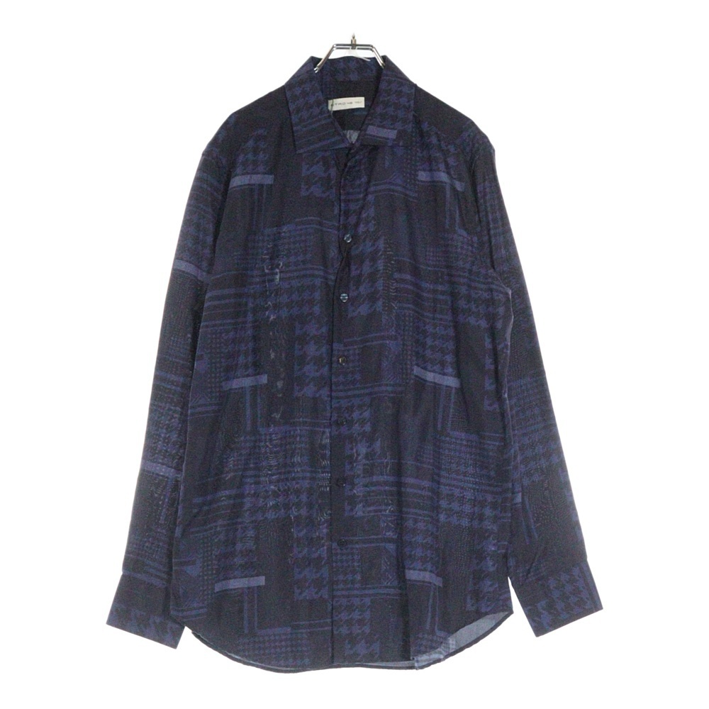 品名ガンクラブチェック 千鳥 総柄プリント シルク ロングスリーブ 長袖シャツ ネイビー 192-11451-5736