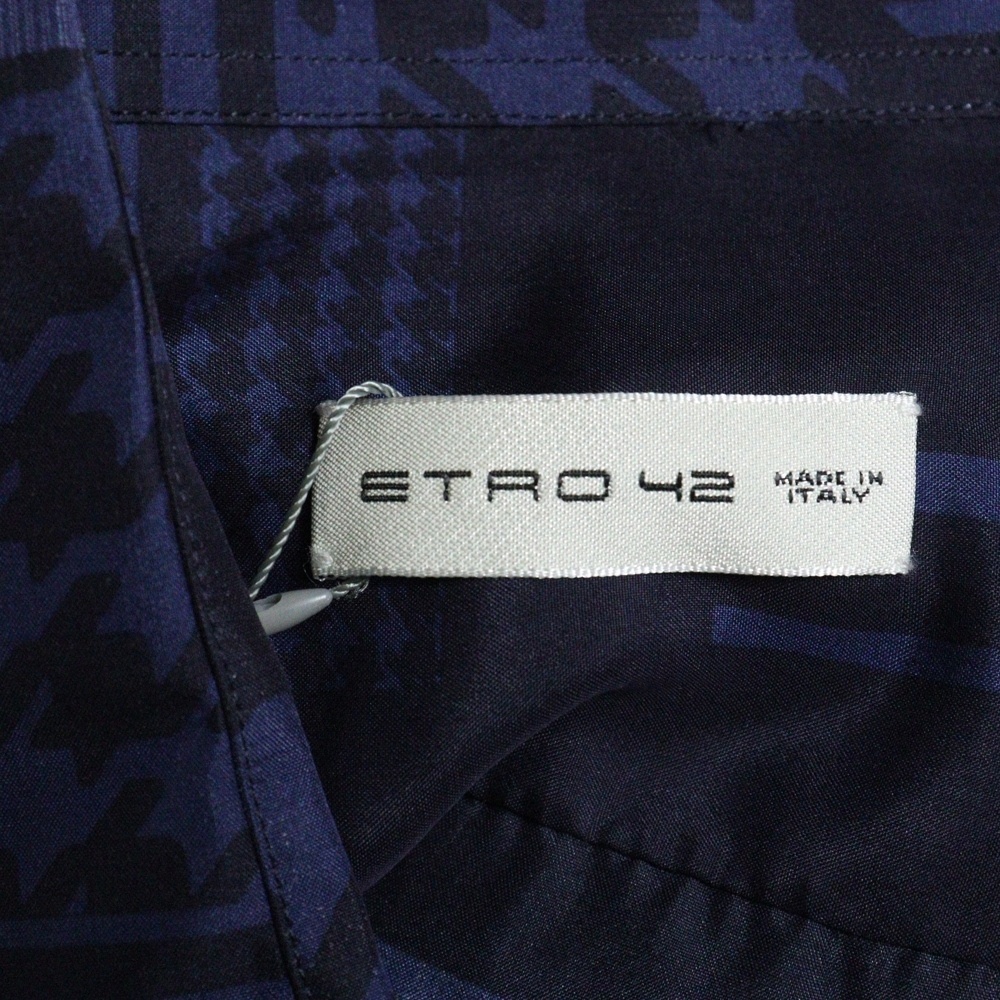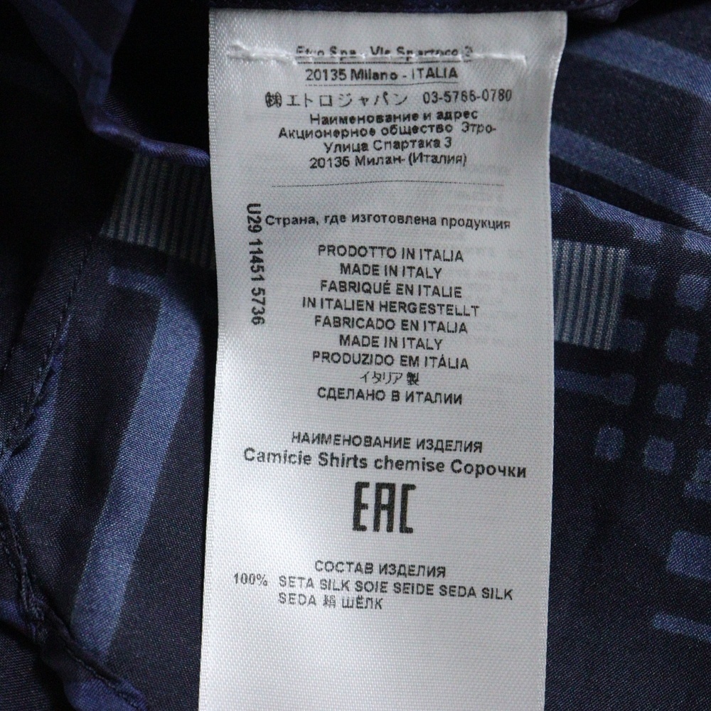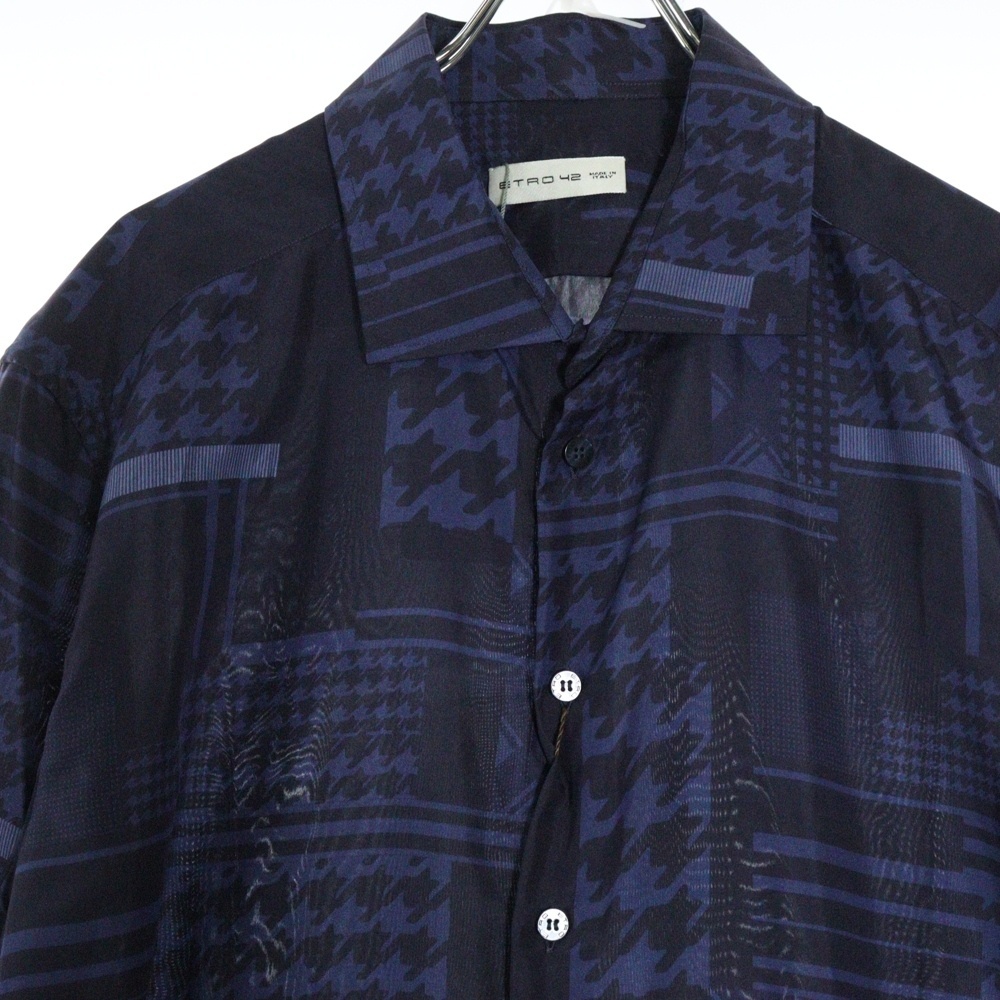 ETRO エトロ ガンクラブチェック 千鳥 総柄プリント シルク ロングスリーブ 長袖シャツ ネイビー 192-11451-5736