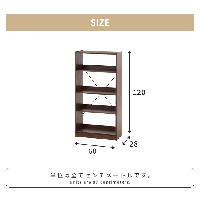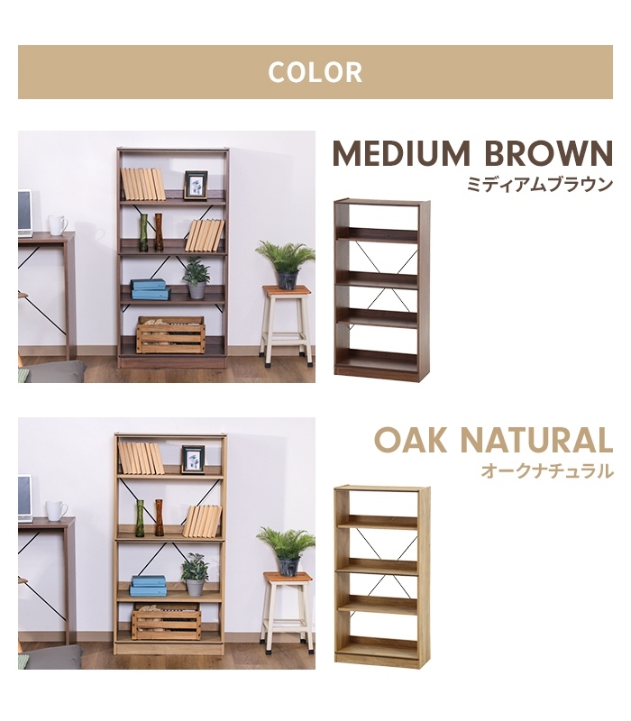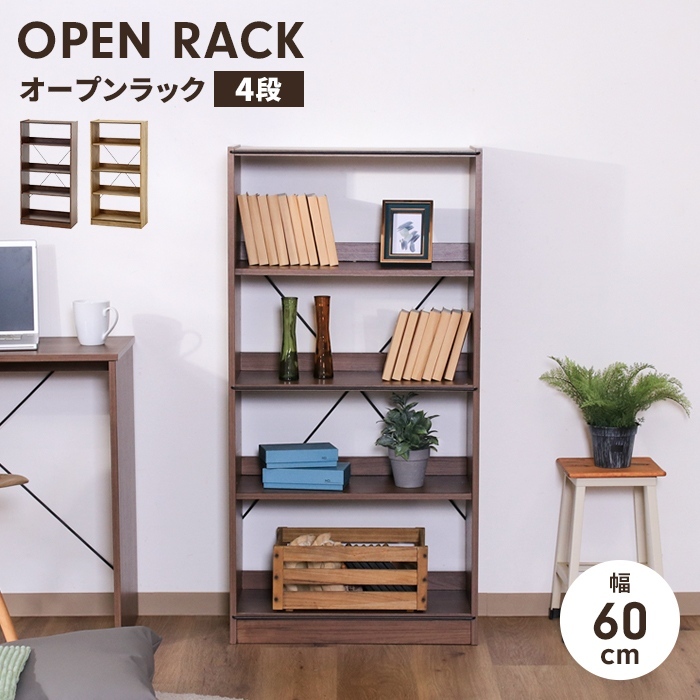 オープンラック 4段 工具不要 収納棚 幅60 奥行28 高さ120 木製家具 収納家具 ディスプレイ ナチュラル 本棚 棚 オープンシェルフ ディスプレイラック 収納ラック 収納シェルフ 飾り棚 インテリア リビング収納家具 木製棚板 ネジ不使用 おしゃれ リビング ダイニング ワンルーム 寝室 ミディアムブラウン オークナチュラル |
