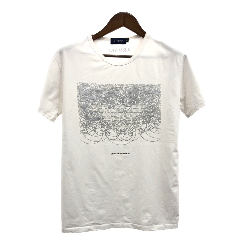 | 【商品管理番号】 Q5471 【ブランド】 ARMANI JEANS/アルマーニ ジーンズ 【サイズ】 XL 【実寸サイズ】 肩幅:約45cm 着丈:約67cm 身幅:約50cm 袖丈:約19cm 【主な素材】 表地 : コットン 【色】 ホワイト 【仕様】 ロゴ プリント 【状態】 汚れ:首元、脇、裾 | |||