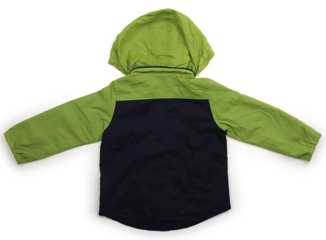 品質タグにシールはがし跡のノリ残りあり。ナイロン地で、メッシュ生地の裏地がついています。フードは襟の中にしまえます。袖口に赤いペンシミあり。