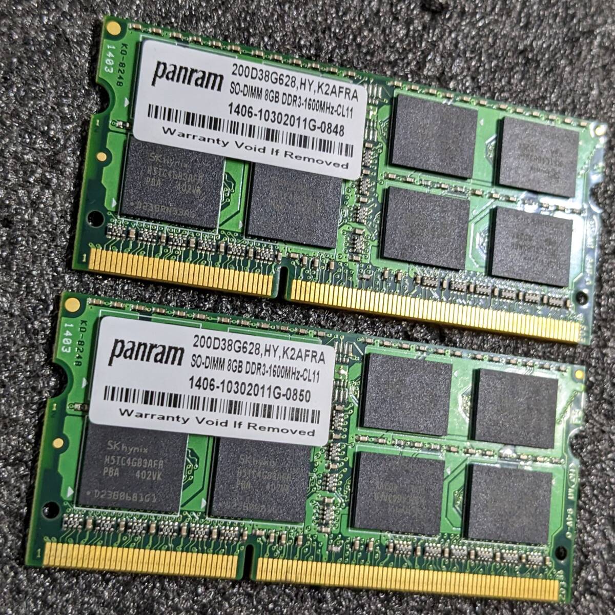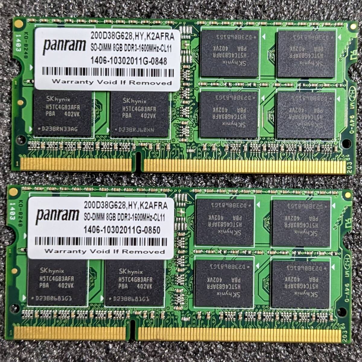 panramのDDR3 SODIMM、8GB2枚組合計16GBのセットです。