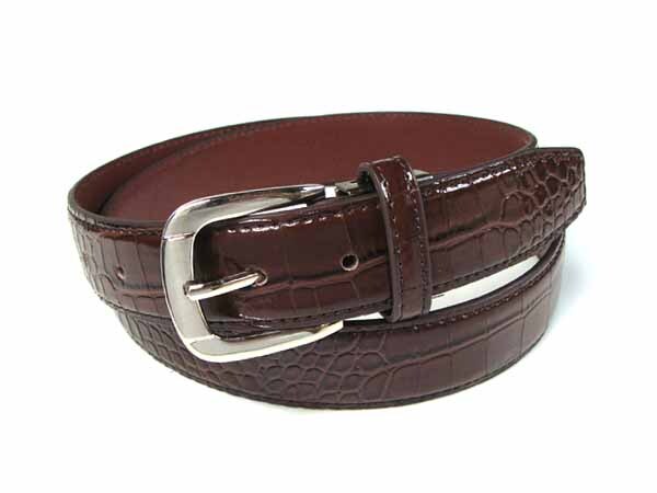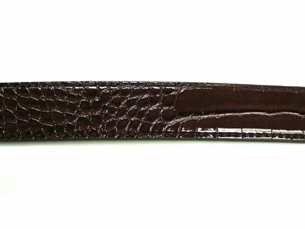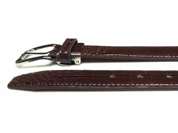 表面が光沢のあるエナメル調クロコ型押しの牛革使用レザーベルトです。