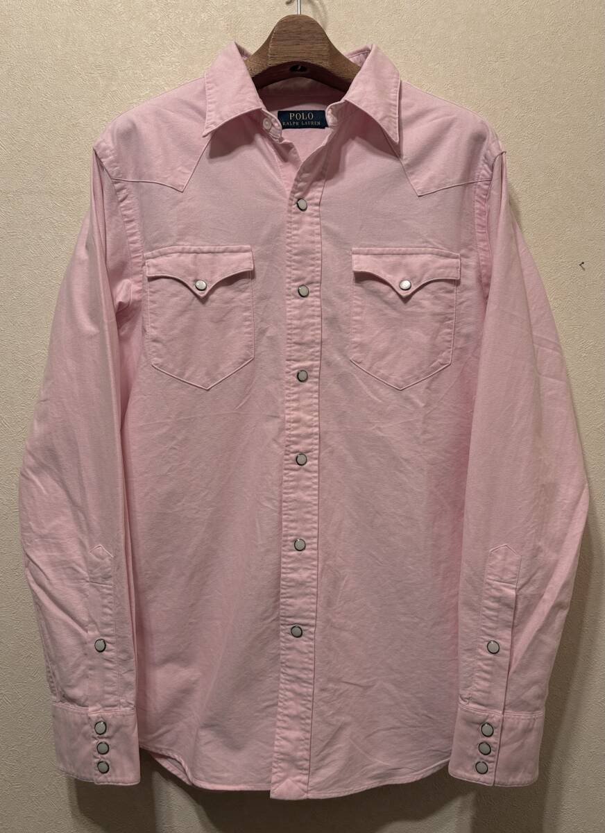 00sオールドPOLO RALPH LAURENウエスタン長袖シャツS:M薄ピンクOXオックスフォード地コットン00年代2000sビンテージy2kポロ ラルフローレン