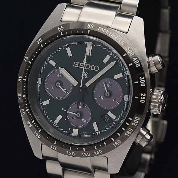 1円 保/箱付 稼働 良品 セイコー プロスペックス SBDL107 379890 クロノグラフ ソーラー グリーン文字盤 メンズ腕時計 0729300 9NBT MST