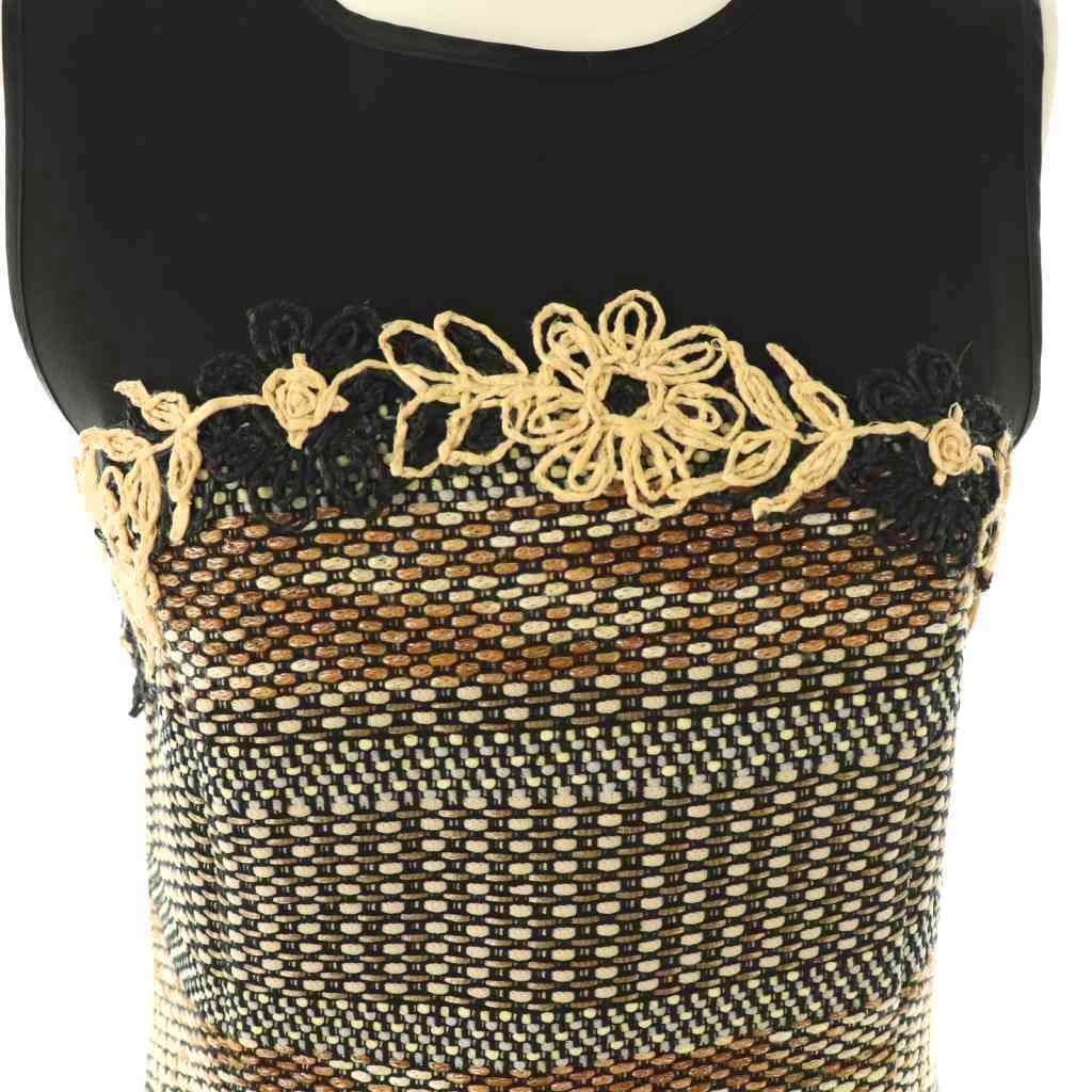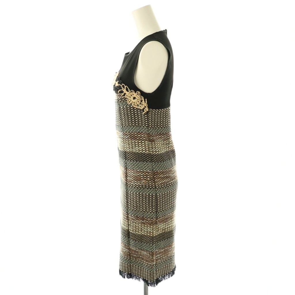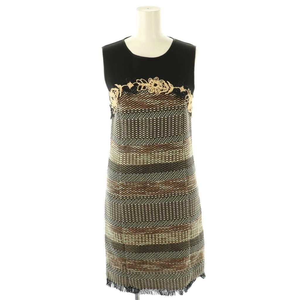 パオラフラーニ PAOLA FRANI フラワーデザインノースリーブワンピース ミニ I38 黒 ベージュ /NR ■OS ■SH レディース
