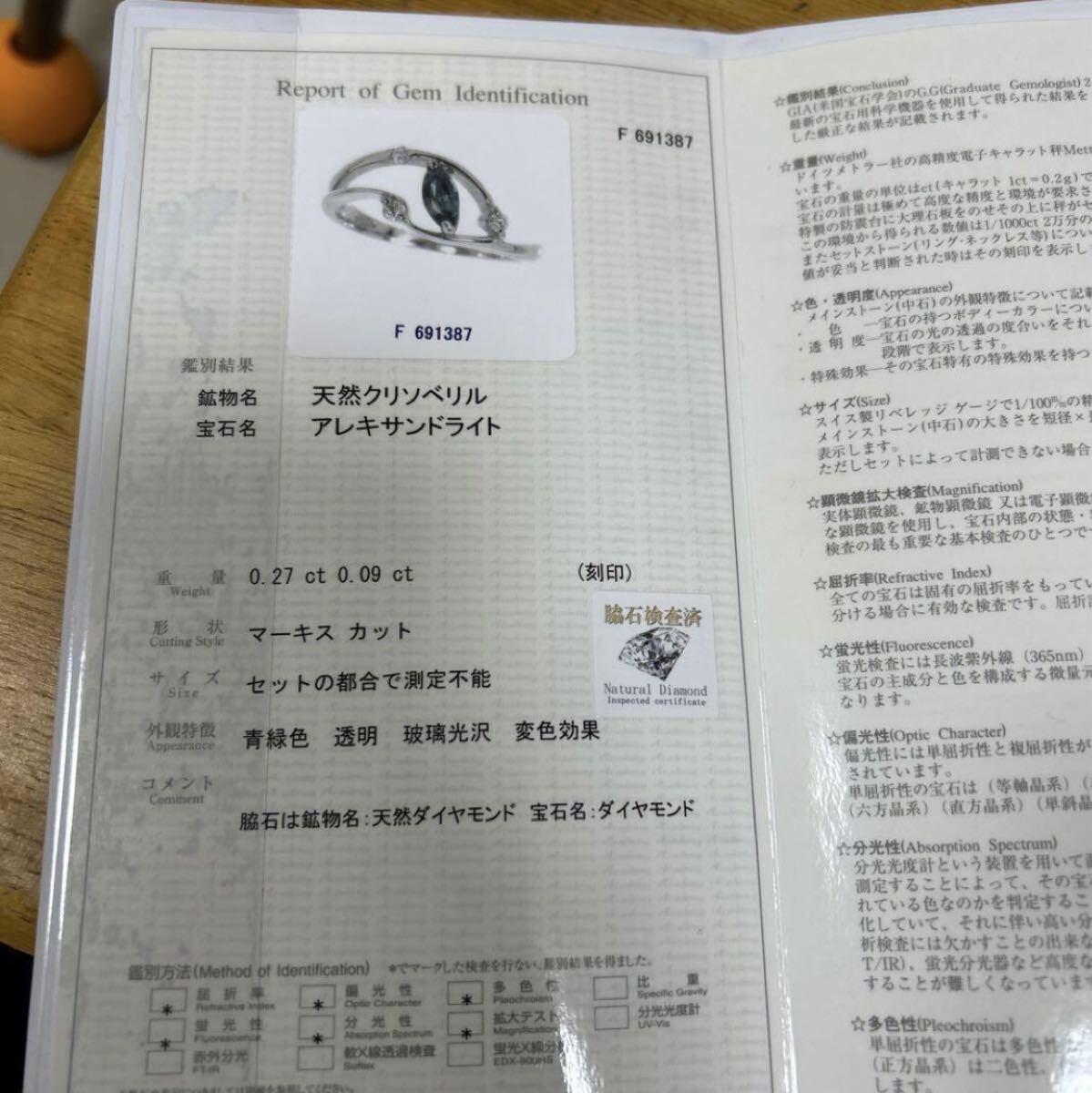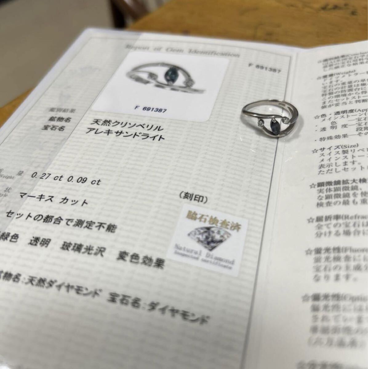 大変希少で、現在値上がりしている天然石アレキサンドライトと天然ダイヤモンドのプラチナリングです。