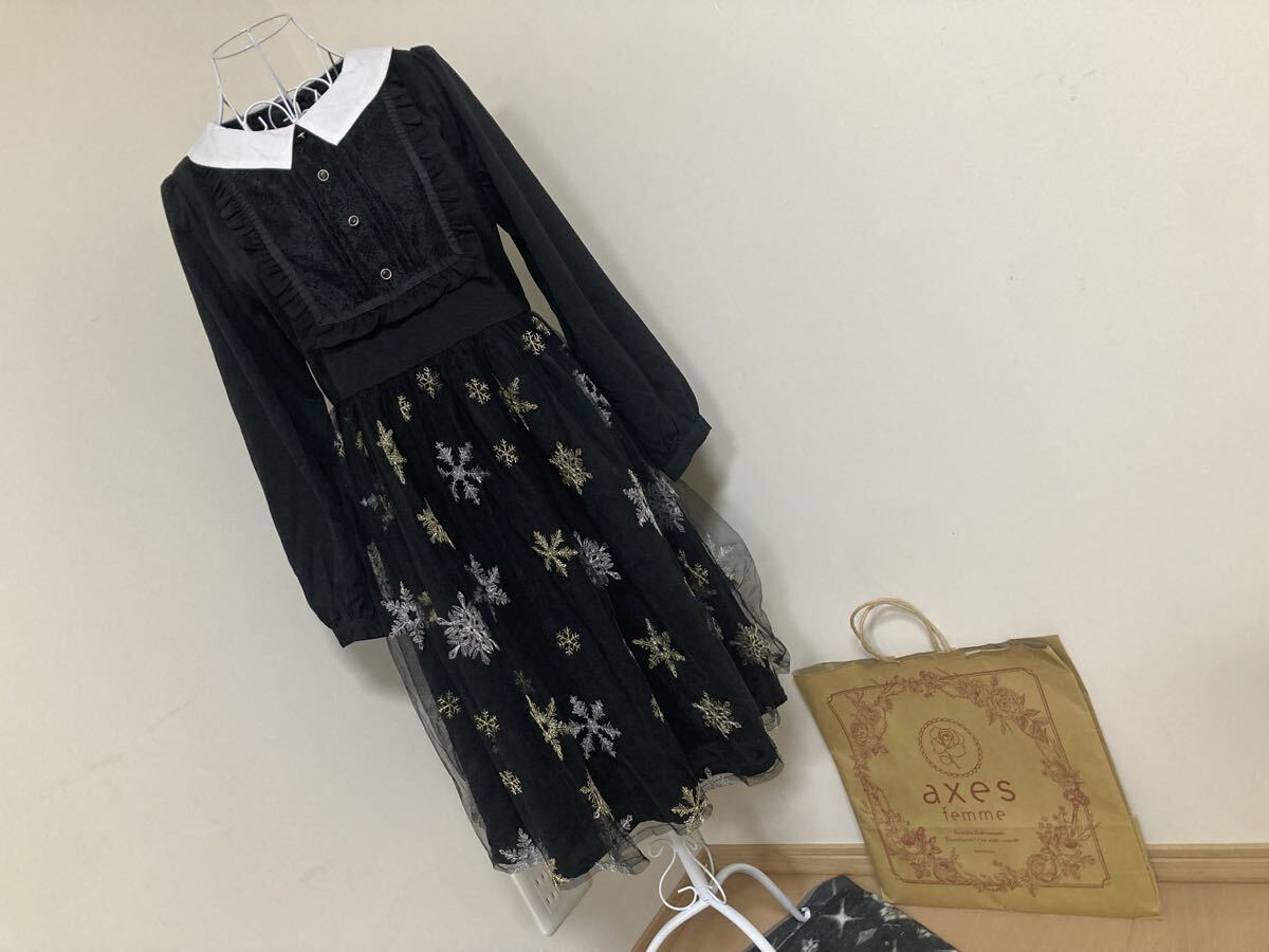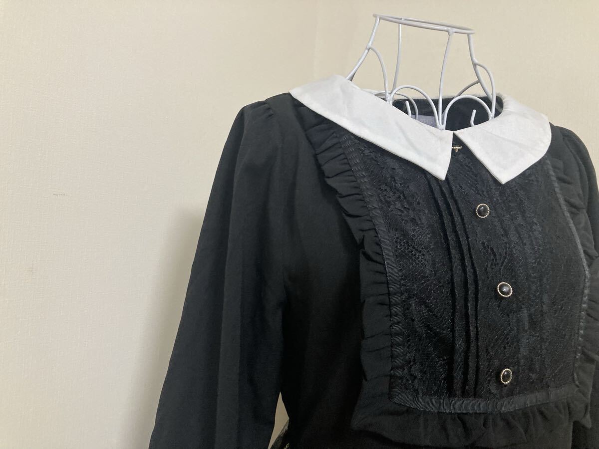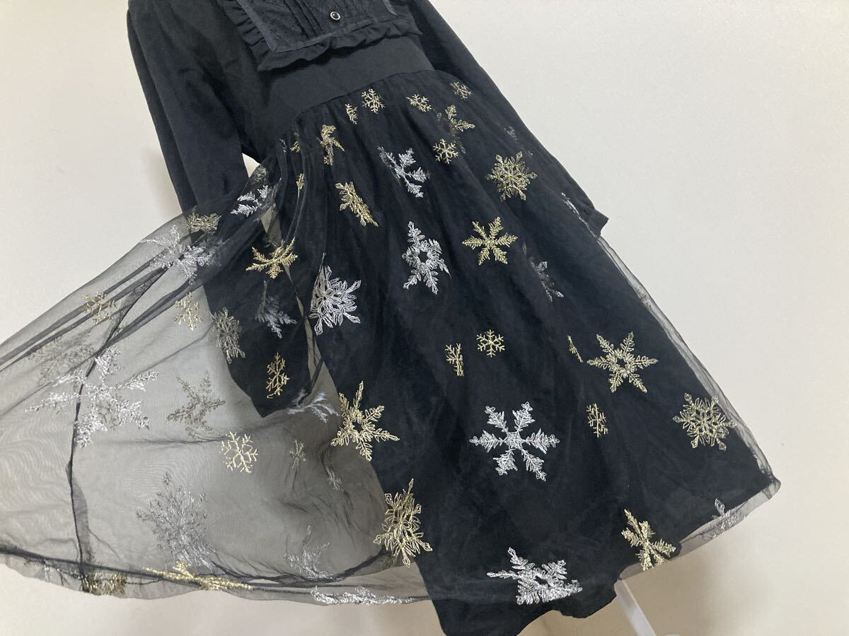 | 自己紹介欄にて発送対応させて頂けない日をお知らせしていますのでご確認をお願いします。 ショッパーは付きません。 サイズ:M 着丈: 約98cm 肩幅: 約 33cm 身幅平置き:約45cm ウエスト平置き;約37cm〜約47cm(バックゴム入り)袖丈:約58cm ※素人採寸の為少しの誤差はご容赦ください。 色:黒x襟はホワイト系 状態:usedですので、小さな汚れやちょっとした引っ掻け等気にされる方、usedに新品同様のクオリティをお求めの方、話し合いも頂けず評価よりクレームをお申し出になられる方はお控え下さい。 チュールに雪の結晶を刺繍であしらわれた冬のガーリーコーデにピッタリなアイテムです。 繊細なレースを重ねたブロッキングデザインが胸元を華やかに見せてくれます。 ウエストの後ろ側はゴムで伸縮するので着心地も◎! ベルトをオンするのもおすすめです。 胸元には開閉不可ボタン飾りレースやテープやフリルが飾られています。 後ろ首元はナミダ開きになっていて開閉可能ボタンが付いています。 お袖口開閉可能ボタンが付いています。 裏地あり 透け感なし 伸縮性なし 一同梱発送、送料について一 佐川急便での発送の際のみ3日間分同梱発送します。 最初の落札日を含む3日間分です。 ご不明な際にはお問い合わせ下さい。 4日目分以降の同梱はお受けしませんので必ずご了承の上ご入札お願いします。 佐川急便の送料は 北海道1000円 東北800円 関東から九州は700円です。 沖縄は1800円 離島は別途中継料金がかかります。 佐川急便以外の発送はお受けしません。 | |||