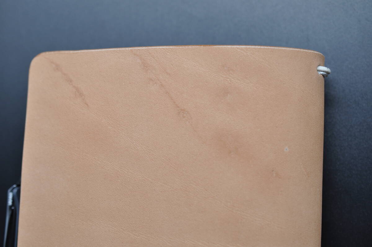 材料は植物タンニンのピット槽でじっくり時間を掛けて鞣した革好きには堪らない栃木レザー社の最高級のサドルレザー(厚さ3mm)で作ったトラベラーズノートカバー(レギュラーサイズ)です。厚み3mmのハードレザーなので、一生ものと言っても過言ではありません。