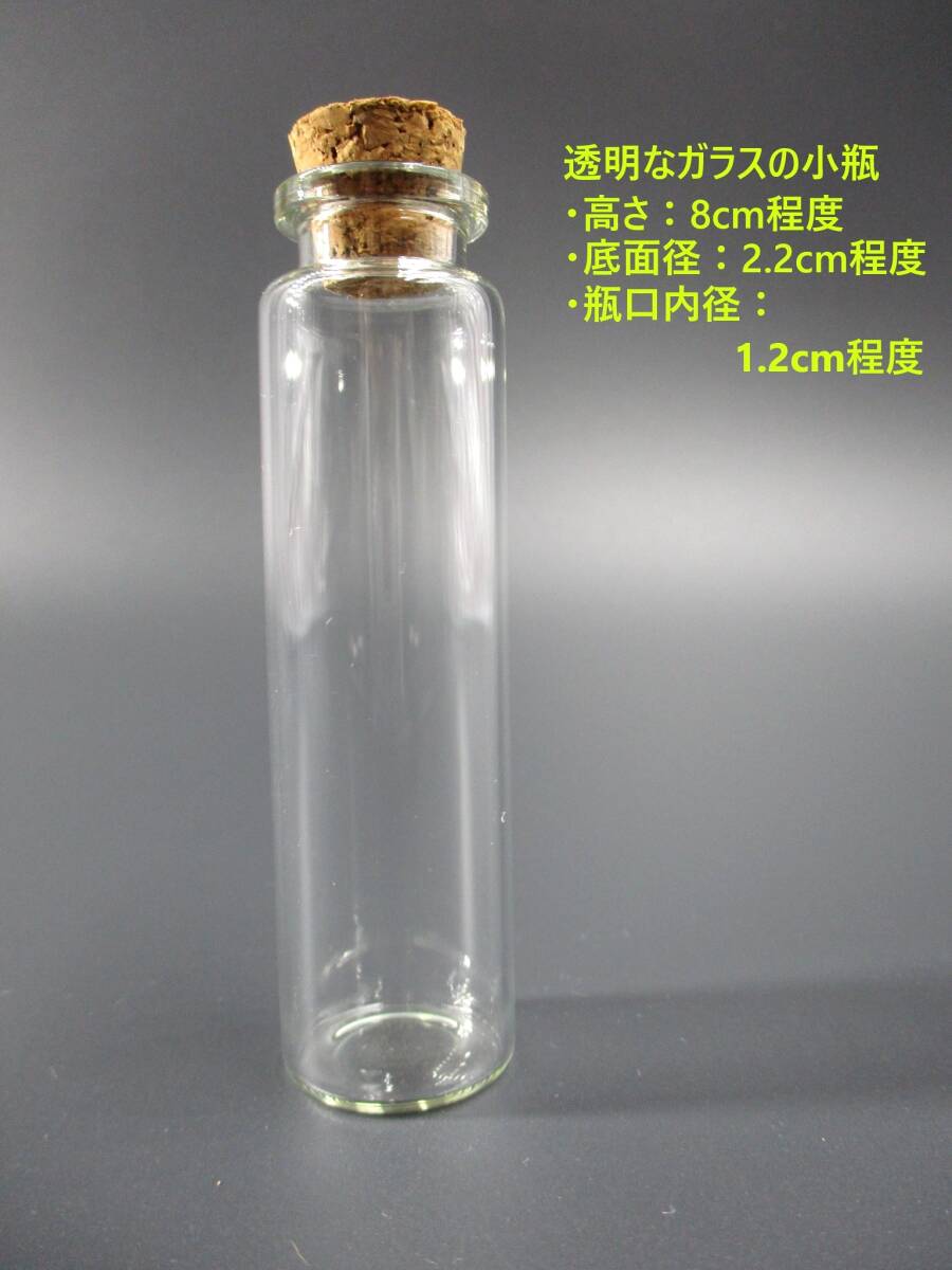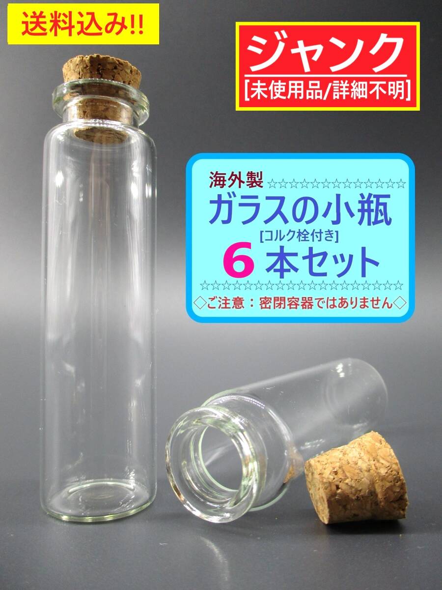 | 倉庫にて長期間保存されていた コルク栓付きの 細長い ガラスの小瓶 6本 未使用品です。 ご注意:密閉容器ではありません。 画像1(TOP)~6は、過去の当方出品画像を流用しています。 画像7~9は今回お送りするお品を撮影しています。 ご了承ください。 製造時期、容量、耐熱性能などの詳細は、不明です。 個々の商品で多少のサイズ差、歪みが見られます。 また、コルク栓は比較的外れやすいようです。 (テープで止めるなどの補強が必要です) 商品には、スレ・キズ・汚れ・ホコリの付着等が見られます。 気になさる方はご遠慮ください。 以上の点より「ジャンク・詳細不明」として出品いたします。 以下の商品説明をよくご覧になってから、ご検討をお願い致します。 神経質な方、完品をご希望の方は、御入札をご遠慮ください。 【商品内容】 海外製 コルク栓付き ガラスの小瓶 6本 [基本的な仕様]*個々のお品で多少の差異があります ・サイズ: 瓶本体 高さ 8cm程度 底面 径2.2cm程度 瓶口内径 1.2cm程度 コルク栓 径 約1.5cm(広い方) 厚さ 約1.3cm ・重量: 1本あたり 15g程度 ・その他 海外製/メーカー等の詳細は不明 製造時期・容量・正確な素材などの 詳細は不明 密閉容器ではありません *状態・セット内容は画像にてご確認下さい *実際の商品の色味とは異なる場合があります *サイズは当方の定規などを使用した素人による計測値です 採寸方法による誤差などご容赦下さい *サイズ対比として、単三電池と一緒に撮影した画像を あげています 参考にどうぞ(画像5・6) 【状態等】 ・倉庫にて長期保存されていた、未使用品です。 ・個々の商品には外装などはありません。 ・商品には、スレ・キズ・汚れ・ホコリの付着等が見られます。 ・長期保存により、コルク栓等にキズ・欠け、 経年による劣化がある場合があります。 ・商品は、ごく簡易的に保護し、 一般的な茶封筒にて発送いたします。 (発送状態参考:画像9) 以上の点より「ジャンク・詳細不明」として出品いたします。 ご承知をいただける方のみ、 ノークレーム・ノーリターンにてご検討ください。 【補足】 「ジャンク」という表現は、 「本来の利用価値が損なわれた物」「正常な動作を保証しない物」 「保証対象外の物」を意味する言葉として使用しています | ||