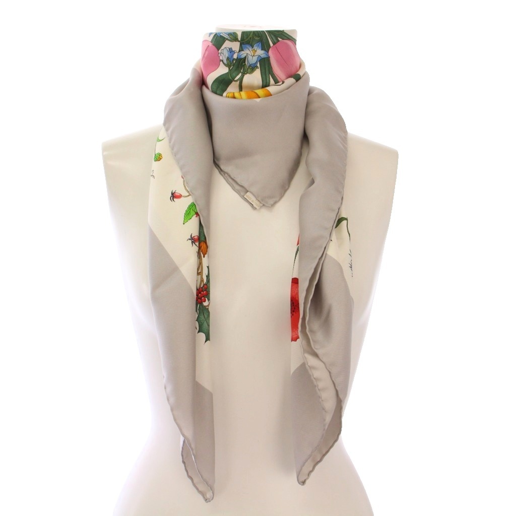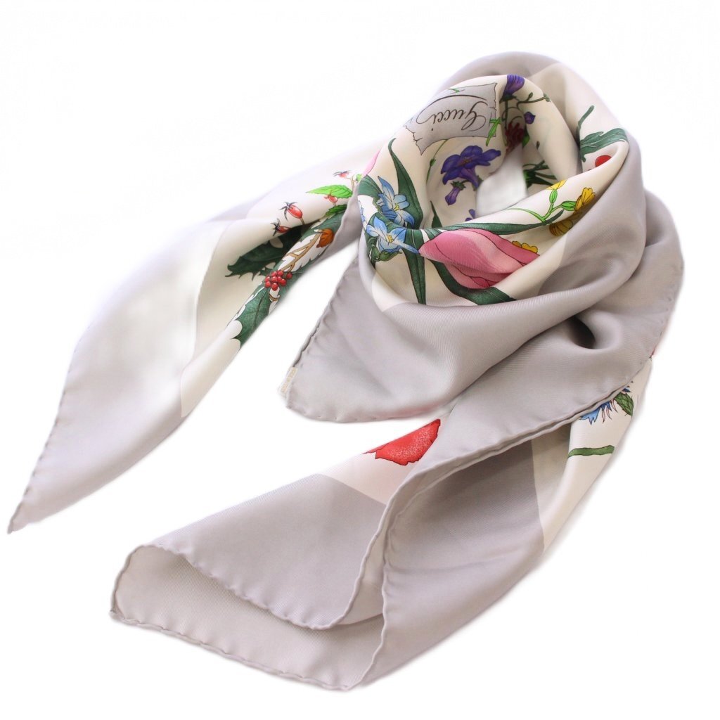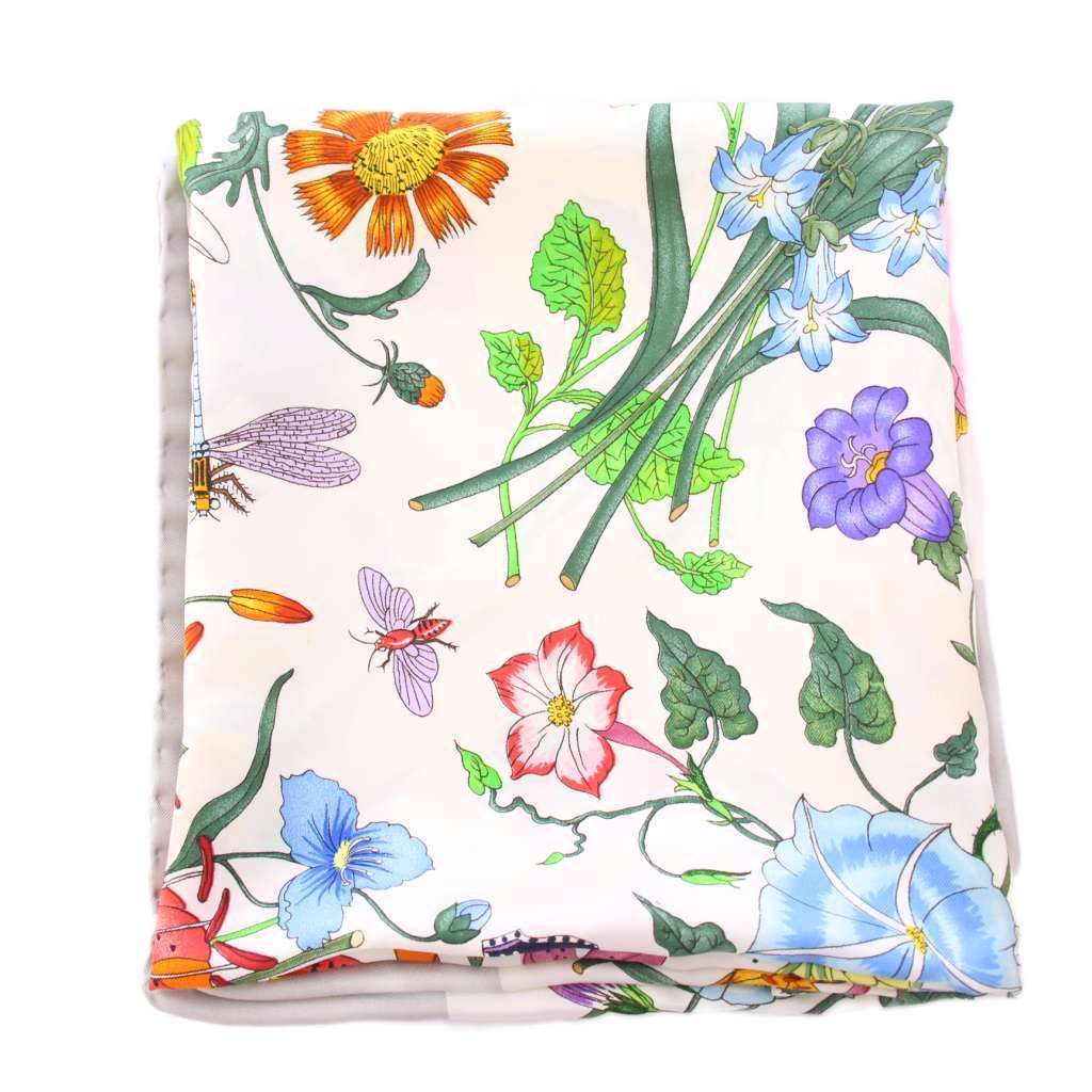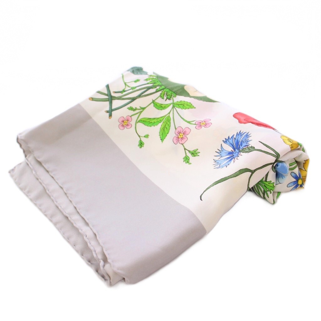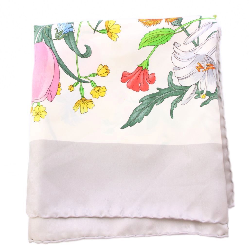グッチ GUCCI スカーフ 花柄 フラワー シルク 白 ホワイト マルチカラー /BB ■OH レディース