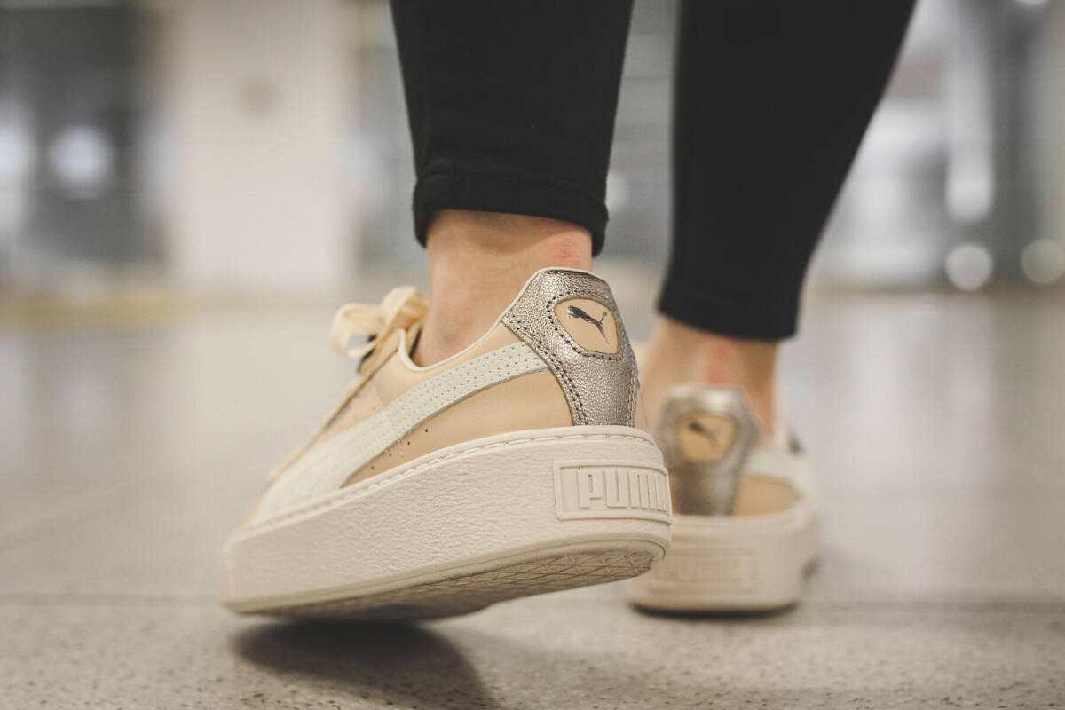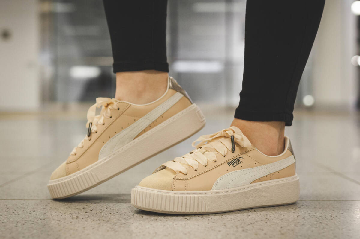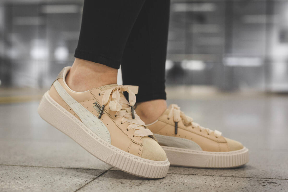 バスケットプラットフォームは新鮮なPUMAスタイルで、1990年代のファッションからインスピレーションを得ています。