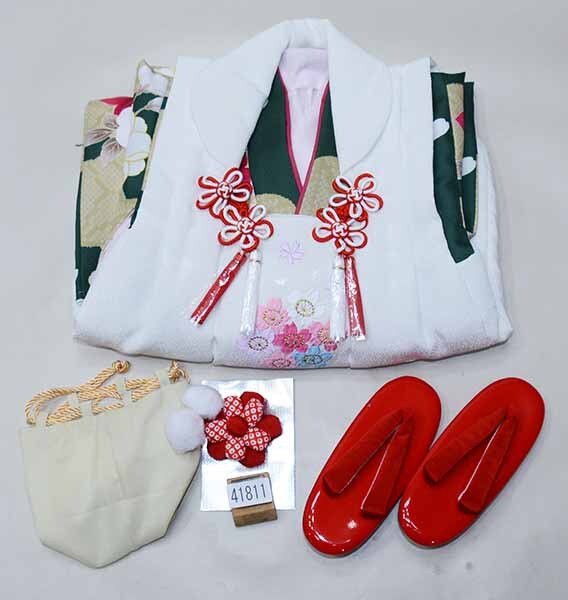 項目 | 三歳被布着物フルセット ・着物 ・長襦袢 ・被布コート ・巾着 ・髪飾り ・草履 ・伊達衿(縫い付済) ・付け紐2本(着物縫付済) ・着付け説明のご案内(ご要望のお客様のみ、詳しくは以下明記しております) 以上フルセット |