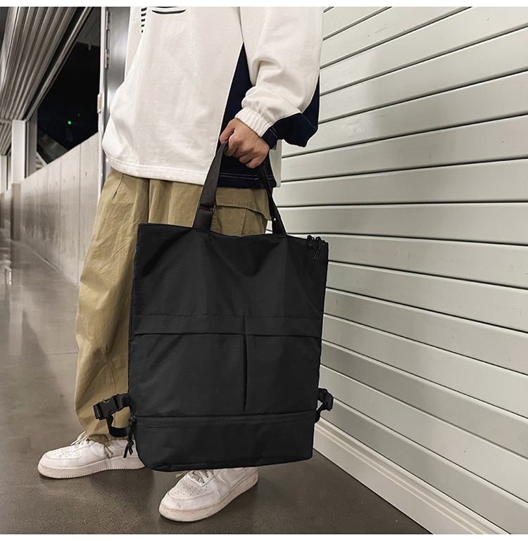 この2WAYバッグは、リュックとしてもトートバッグとしても使用できるため、シーンに応じて使い分けが可能です