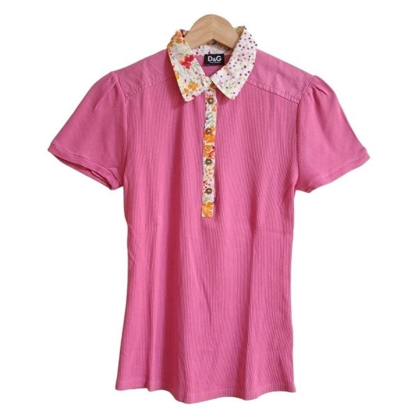 ディーアンドジー D&G 半袖ポロシャツ サイズS - ピンク×白×マルチ レディース ドット柄 トップス