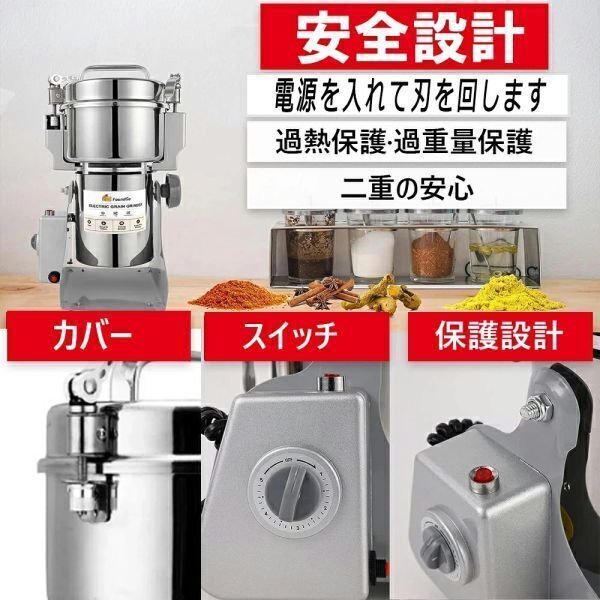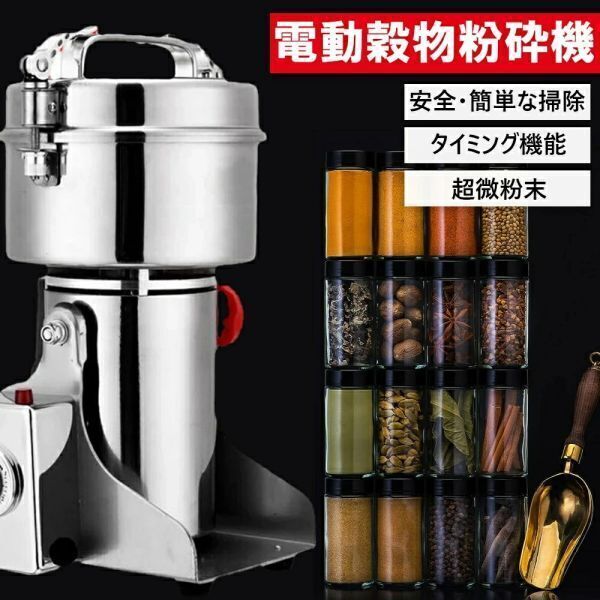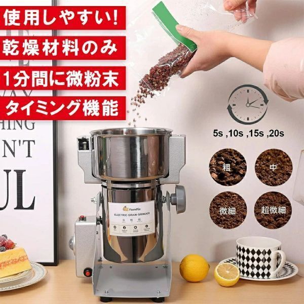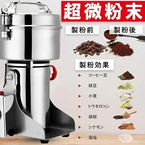 粉砕機 電動粉砕機 穀物粉末機 電動ミル 700g 1800W超高出力 28000 rpm/ min回転速度 30~300メッシュ超微粉砕 電動ミル コーヒーミル