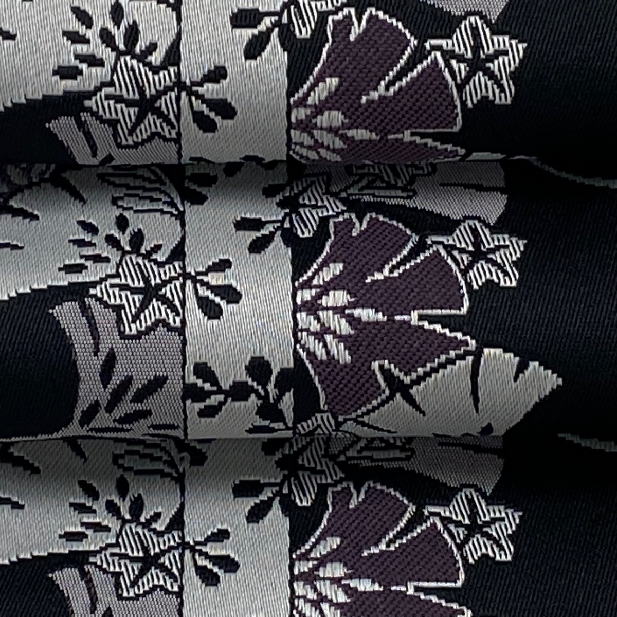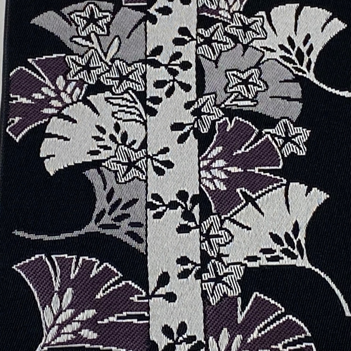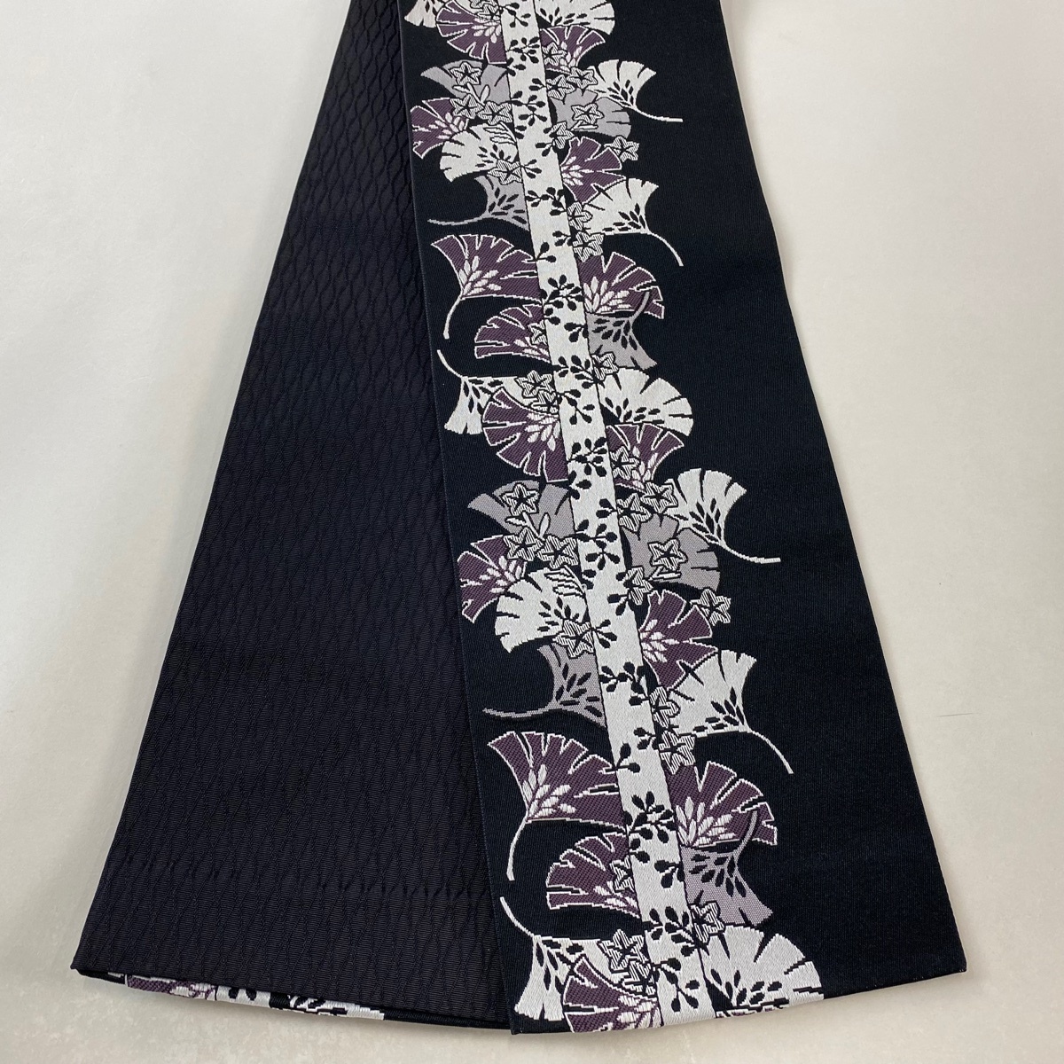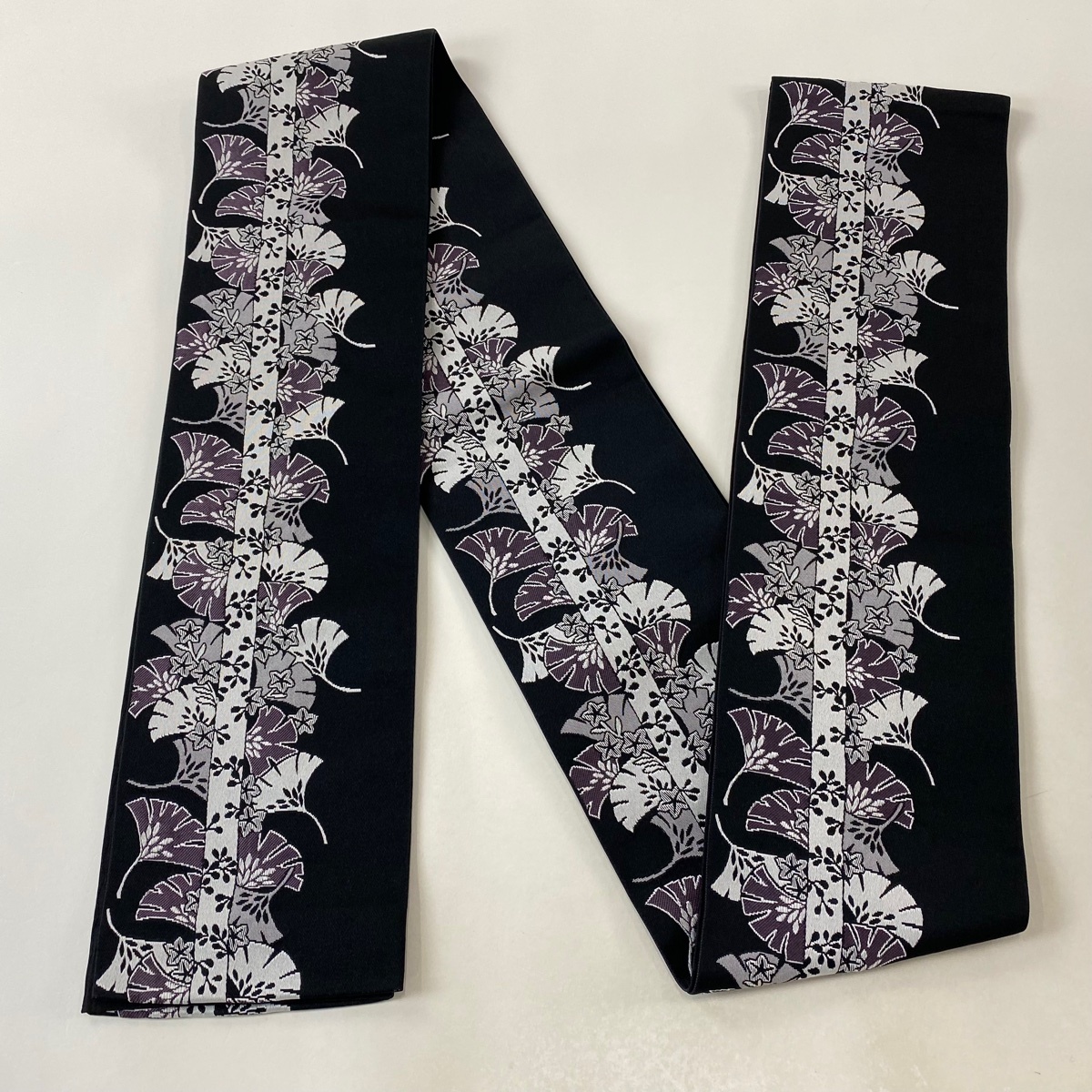 半幅帯 美品 優品 銀杏 楓 黒 化繊 【中古】 |