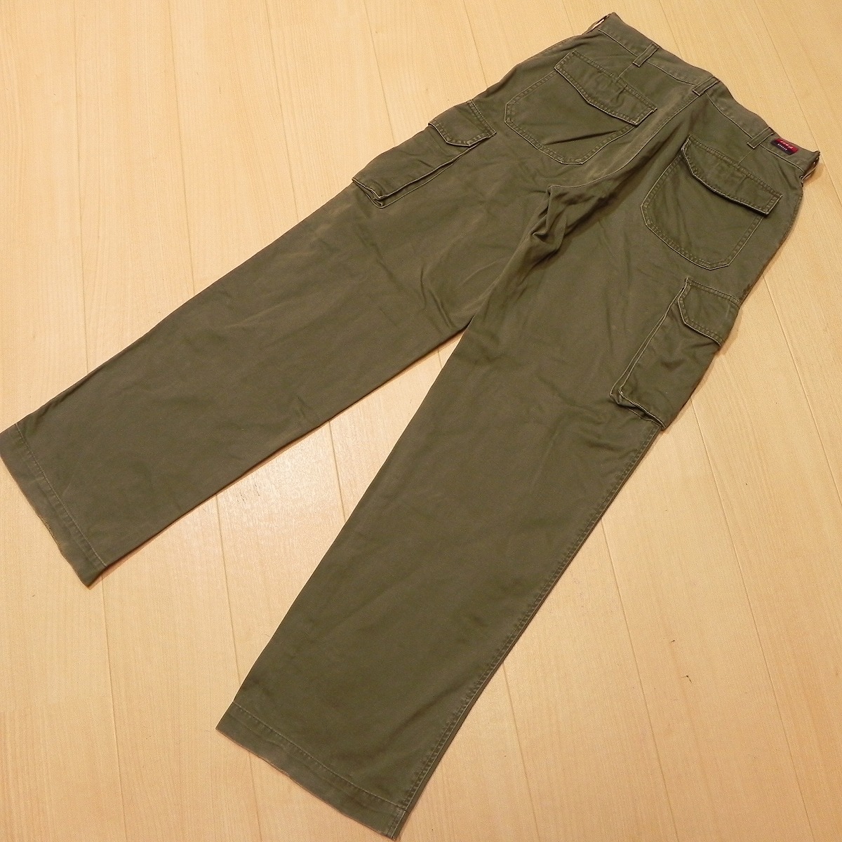 ●あくまでも古着のため、ノークレームノーリターンでお願いいたします。使用感がございます。 素材は綿100です。色はオリーブ系です。裾にやや擦れがございます。