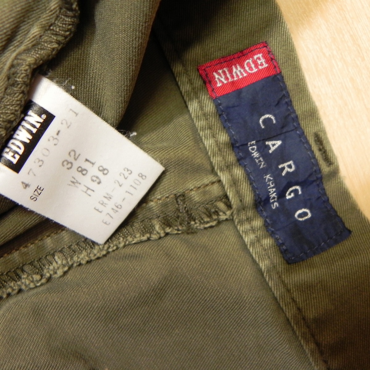 ^26★ エドウィン EDWIN 47303-21 カーゴパンツ 32 オリーブ系 ミリタリーパンツ ワークパンツ 古着 即決 ★