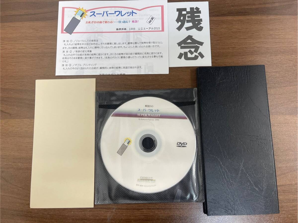 札入れより紙幣を半分ほど抜き出し、それを観客に差し出します。観客は喜んで紙幣を受け取ろうとします。 次の瞬間、紙幣は札入れに瞬時に引っ込んでしまいます。ちょっとした笑いのとれる使い方です。 ②奇跡の変化現象 札入れの中で白紙が本物の紙幣に変わります。次にその紙幣が目の前で瞬間的に名刺に変わります。 名刺はそのまま観客に渡す事ができます。(名刺の代わりに観客の選んだカードに変化させる事も可能) ③ダブルプリンティング 札入れの中のよく改められた白紙が、瞬間的に本物の紙幣に両面印刷されます。