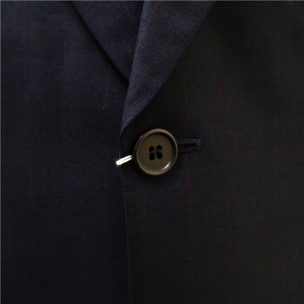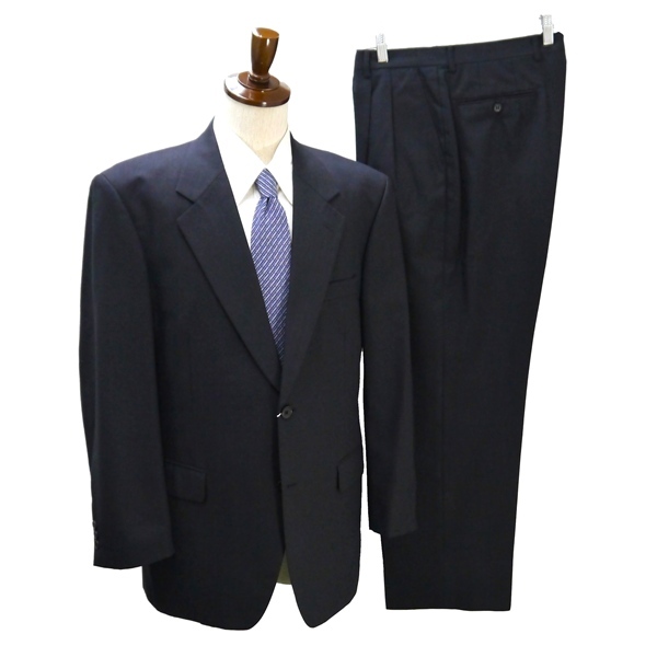 表地(全体的)状態:B(ジャケットの襟首と両袖にてかりが見受けられます。スラックスの両足にてかり・右タック付近に汚れが見受けられます。その他の状態は良い事から、今後もまだまだご愛用頂けるお品だと思われます。)