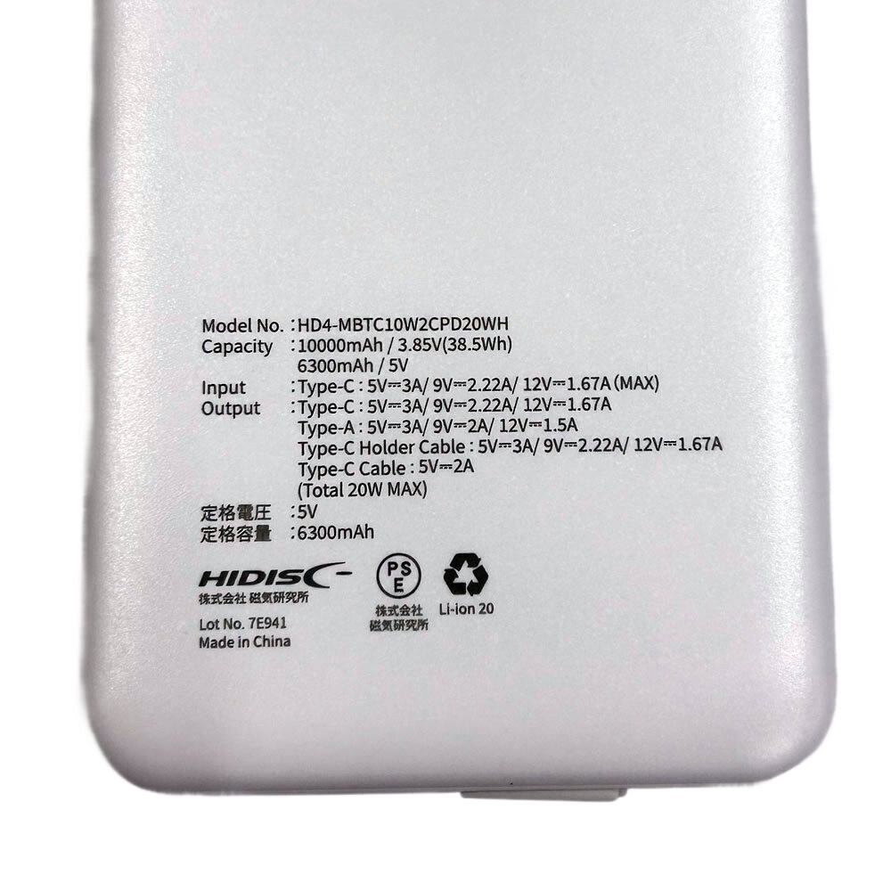 HIDISC PD20W急速充電対応 ケーブル一体型モバイルバッテリー