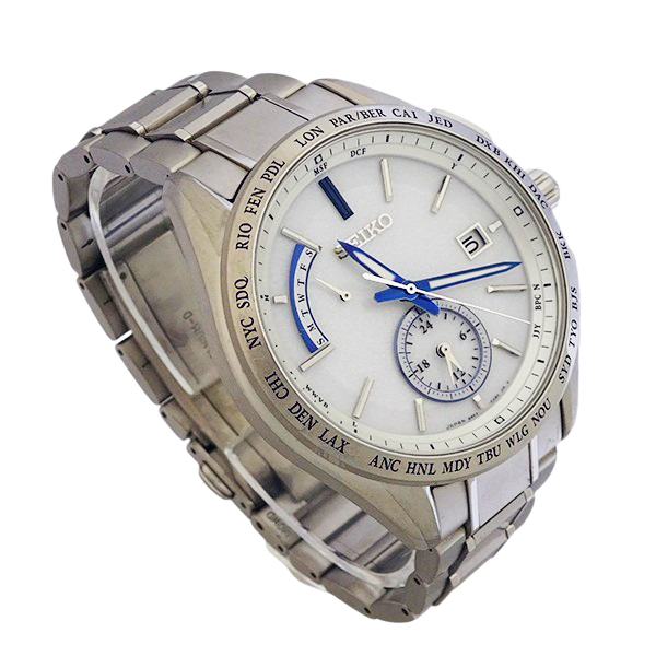 【アイテム】ブライツ フライトエキスパート 【型番】SAGA229/8B63-0AA0 【素材】チタン 【文字盤】ホワイト文字盤 【仕様】ソーラー電波 【ケースサイズ】約42.0mm (ラグ・リューズを除く) 【ベルトサイズ】約17.5cm 【付属品】箱・保証書・取扱説明書 【程度】中古 【商品ID】FL-FL-2531 【商品詳細】 ケース・ベゼル・ブレスに細かな小傷やスレ跡が見受けられます。 風防は、目立つ大きな傷などなく視認性に問題ありません。 | ||||