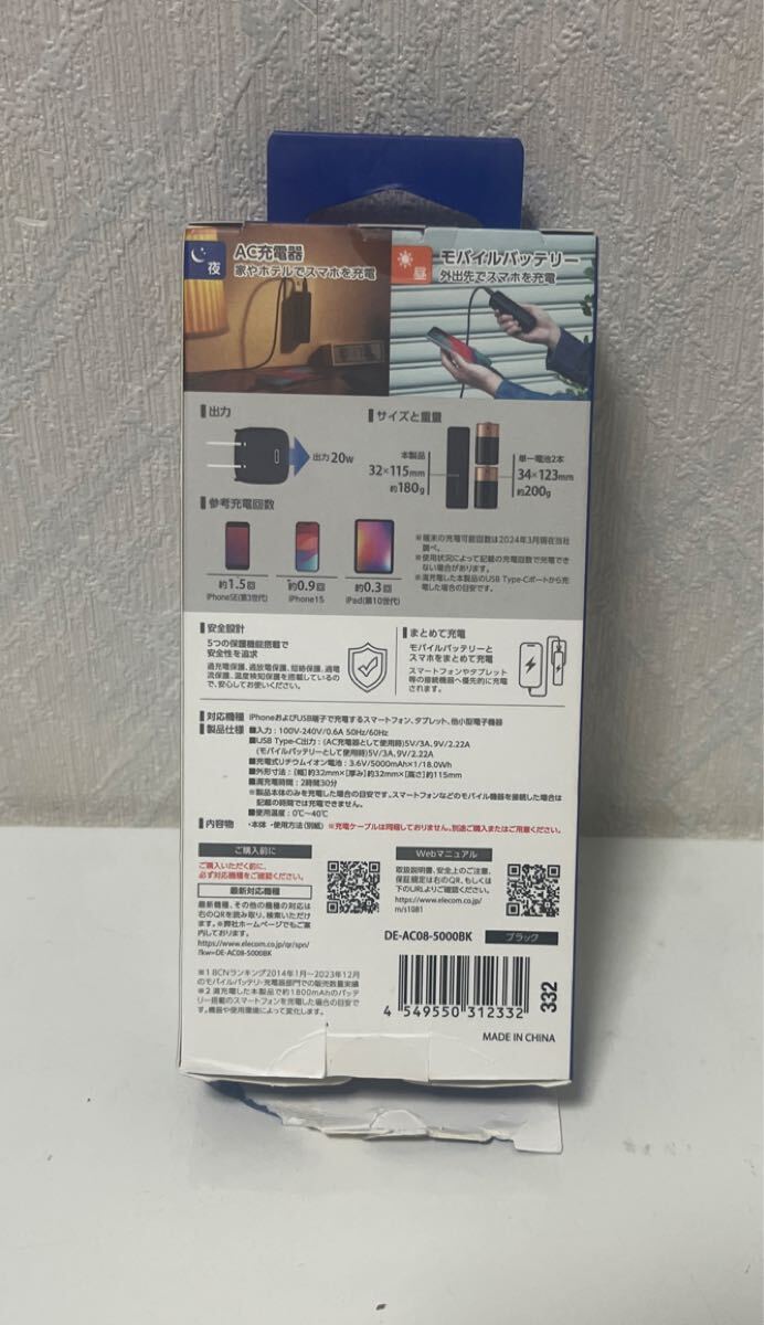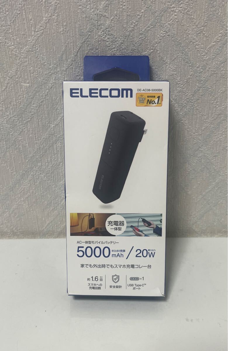 709i0614 エレコム モバイルバッテリー 5000mAh AC一体型 コンセント 20W USB PD対応 Type-C 1ポート PSE技術基準適合 スイングプラグ