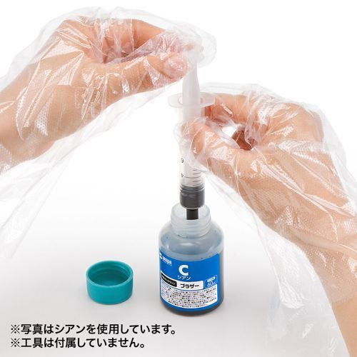※配送の送り主はサンワサプライ(株)と記載されています。沖縄・離島配送不可となります。 当店は正規販売代理店です。 特長 ブラザーLC111・113・117シリーズ用つめかえインクです。 2回目からのインクのみタイプです。 ※つめかえには専用工具・リセッターが必要です。 ※工具付きのインクはページ下部製品ラインナップ「リセッター付きインクセット」をご確認ください。 気をつけておりますが、タイミングによっては在庫切れの場合があります。 仕様