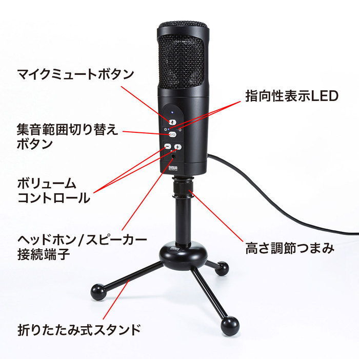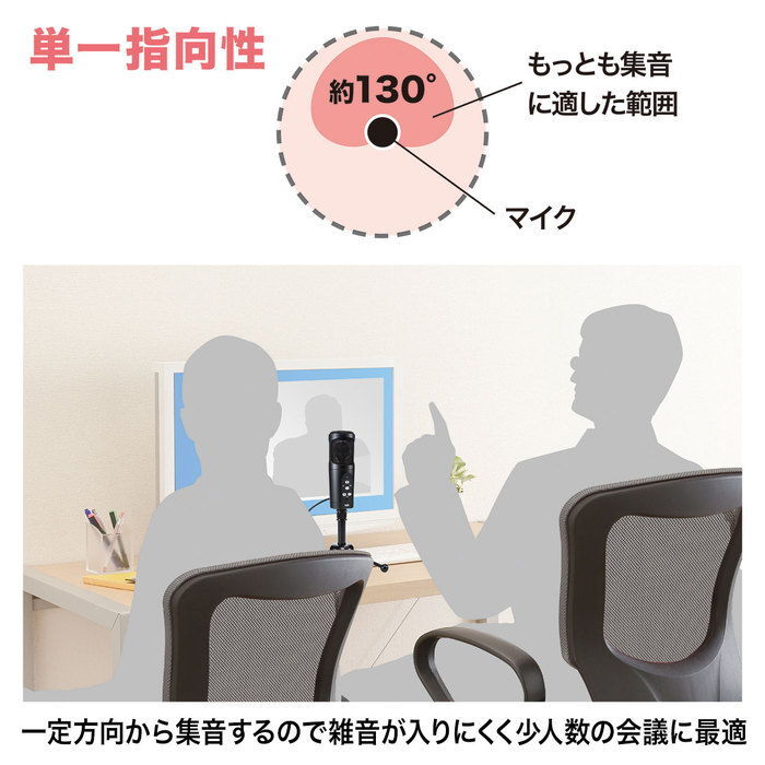 ※配送の送り主はサンワサプライ(株)と記載されています。沖縄・離島配送不可となります。 当店は正規販売代理店です。 特長 最大半径5mの音声を集音する高感度マイクを搭載したUSBマイクです。 全指向性と単一指向性を本体のスイッチで切り替えることができます。会議の規模に応じて最適なモードを選択できます。 全指向性は360°全方位で音を集音することができるので、人数の多い会議で最適です。 単一指向性は正面を中心として約130°の範囲の音を集音するので、少人数会議や周囲が騒がしいときに最適です。 エコーキャンセリング機能付きです。 Zoomなどのインターネット通話に対応しています。 USBバスパワー駆動なので、ACアダプタは不要です。 しっかりした重みのあるメタルハウジングです。 マイクミュート(消音)ボタン付きです。 メーカー保証期間180日 ※当店発注日からになります 気をつけておりますが、タイミングによっては在庫切れの場合があります。 仕様