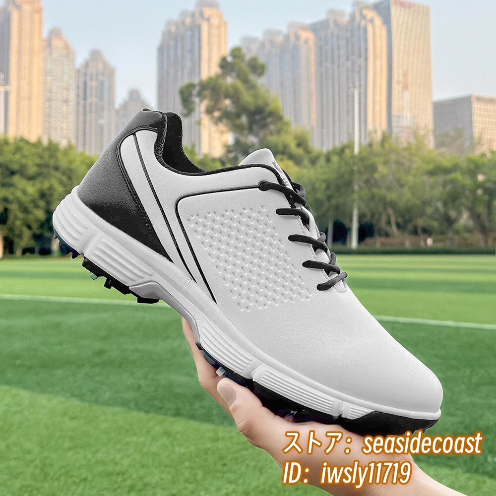 高級品◆ゴルフシューズ 新品 強いグリップ スニーカー メンズ 通気性 運動靴 スポーツシューズ 幅広 防滑耐磨 フィット感 白*黒 26.0cm