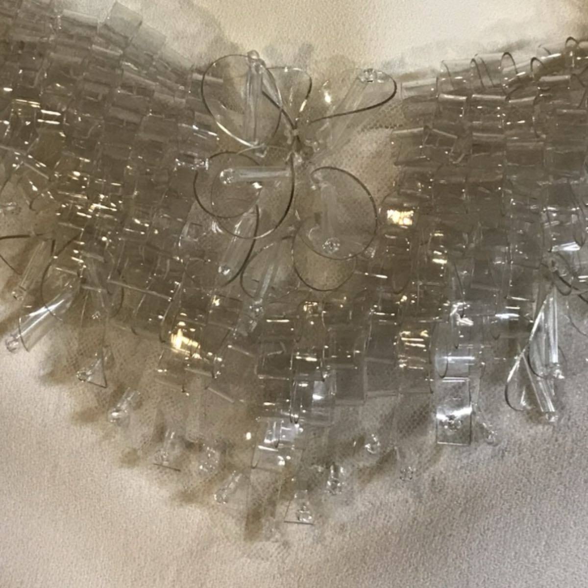 前後ネックラインにクリアエナメルでフラワー飾り等があしらわれ、とってもお洒落で素敵です。