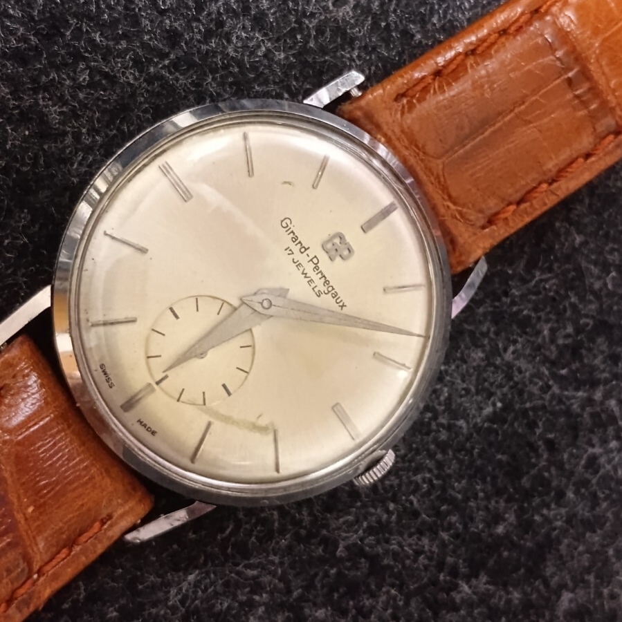 スモールセコンドのジラールペルゴです。レトロな雰囲気の文字盤にスモールセコンドが良く似合います。いつの年代でも使えるシンプルでバランスの取れたデザインです。