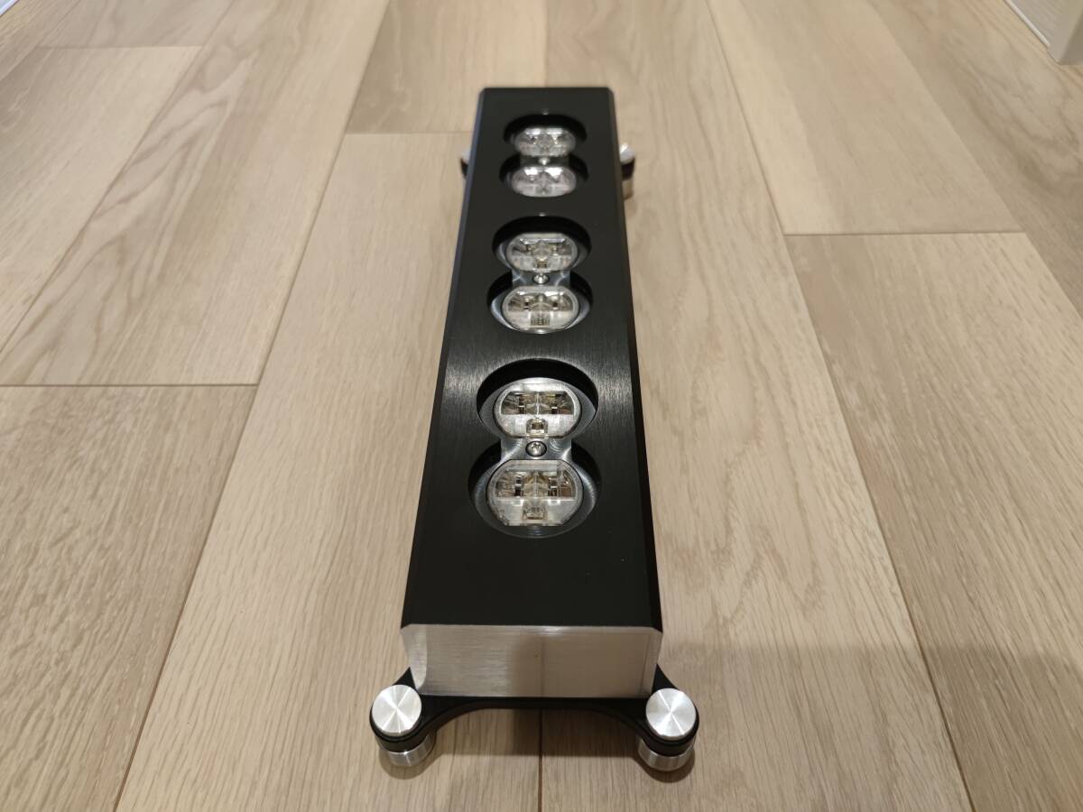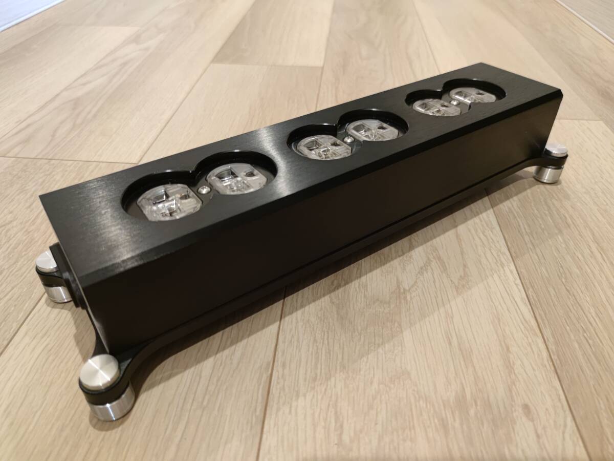 驚愕の重量 3.4kg 天然クォーツ フル充填 ハイブリッドスクエア 6口タップ 航空機アルミ合金削り出し 高純度OFHC 6-nines 16GA単線