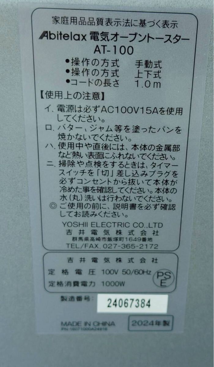 | 商品詳細 | ◯G9928 美品 Abitelax アビテラックス オーブントースター AT-100 24年製◯ |