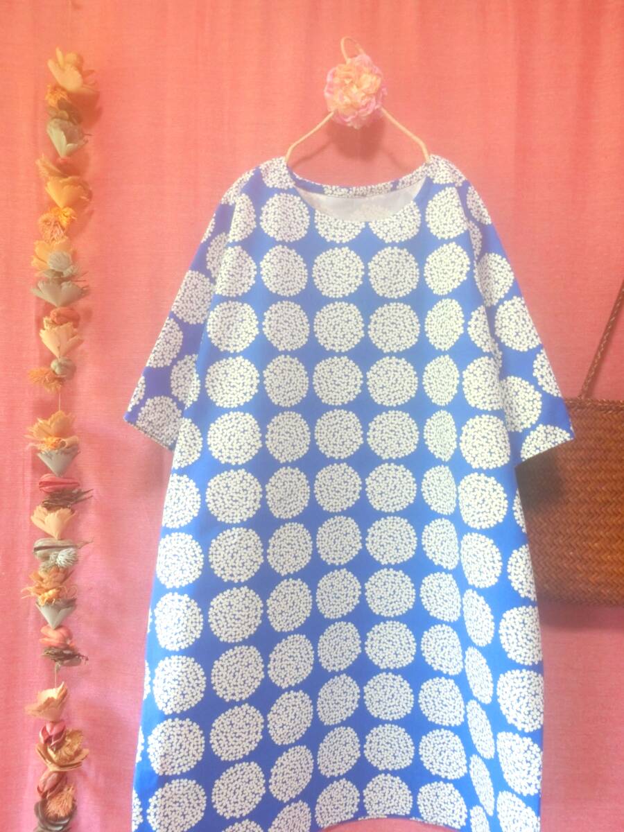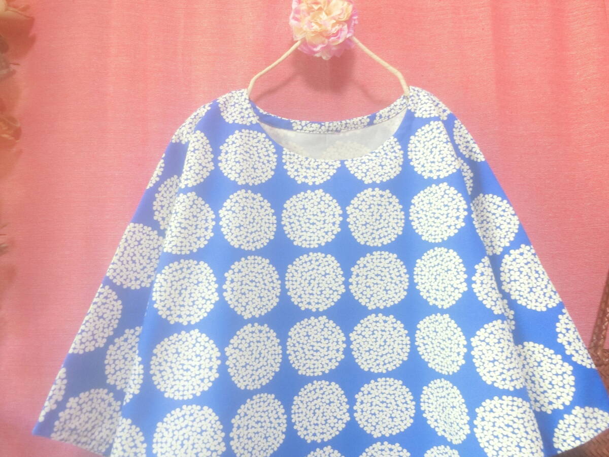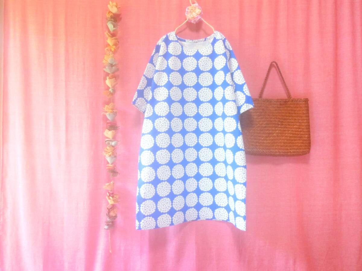 【はんぱ袖・重ね着】サークルフラワー ゆったりワンピース royal blue * ハンドメイド *北欧*ナチュラル*96