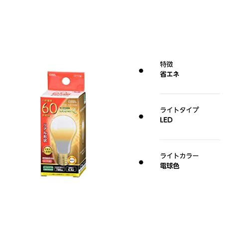 ・【 特 長 】● この商品はLED5年対象です● 小形電球60形相当● 密閉形器具対応● 断熱材施工器具にも対応● 広配光約230°● 光が全方向に広がります● 省エネ法2027年度目標基準達成● 電球色● E17口金● 5年
