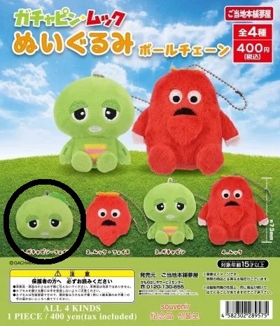 ガチャピン&ムック ぬいぐるみボールチェーン ガチャピン・フェイス