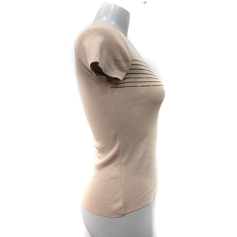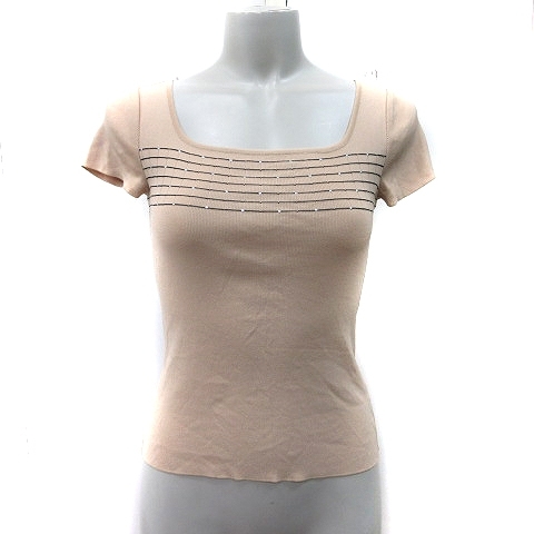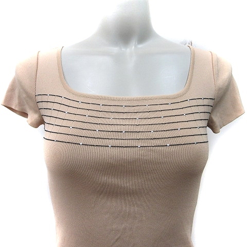 クードシャンス CdeC COUP DE CHANCE カットソー 半袖 スクエアネック ボーダー ビーズ 38 M ベージュ /YI レディース