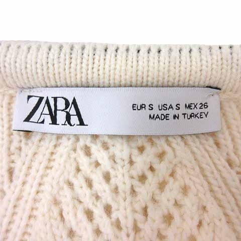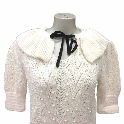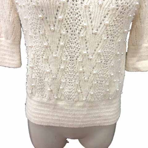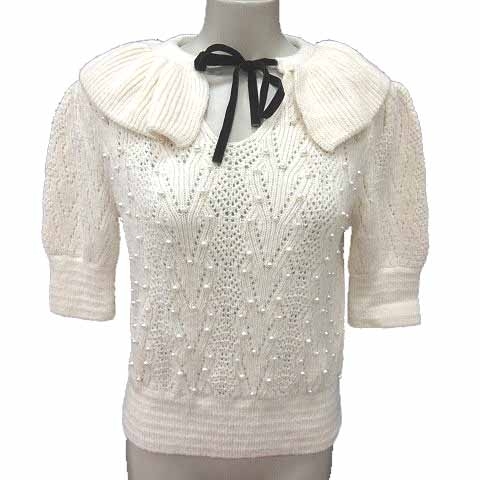 ザラ ZARA ニット セーター ボウタイ パール 五分袖 S 白 ホワイト /YK レディース