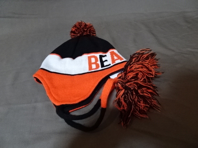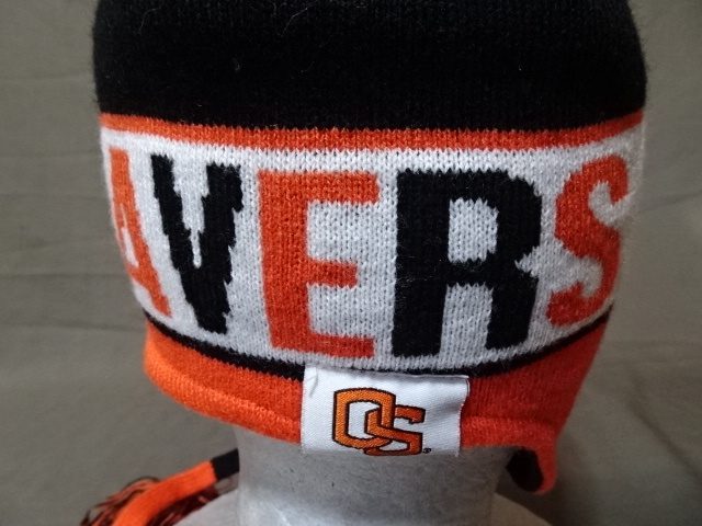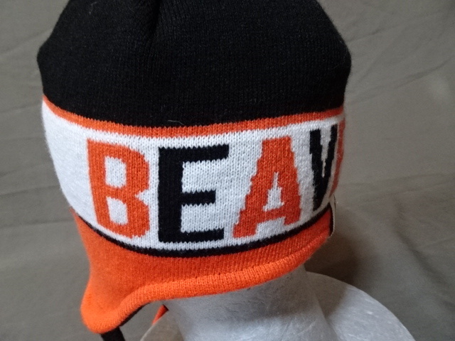 激レア USA購入【NEW ERA】USカレッジ オレゴン州立大ビーバーズ【OREGON ST BEAVERS】【OS】ロゴマーク付 耳当てひも付ニットCAP 中古良品