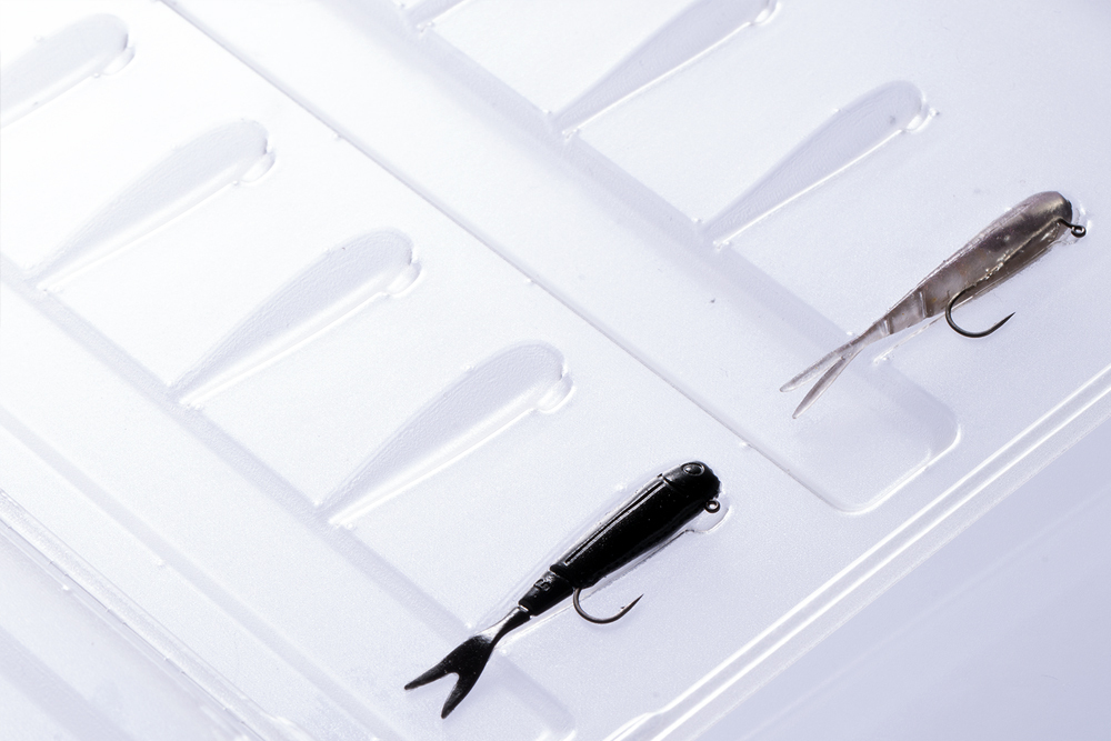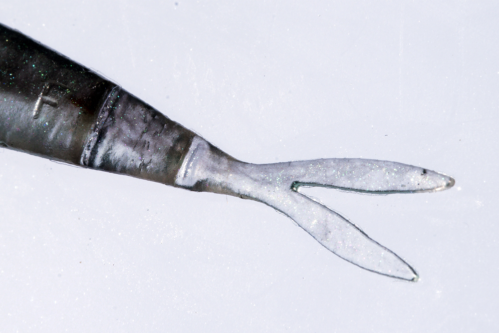 極めて薄いスリットとテールには、例えアングラー側がアクションを加えていなくとも、微妙な水流を捉え動き続け、シェイクなどの人為的なアクションを見切るクレバーなバスさえもバイトさせる。